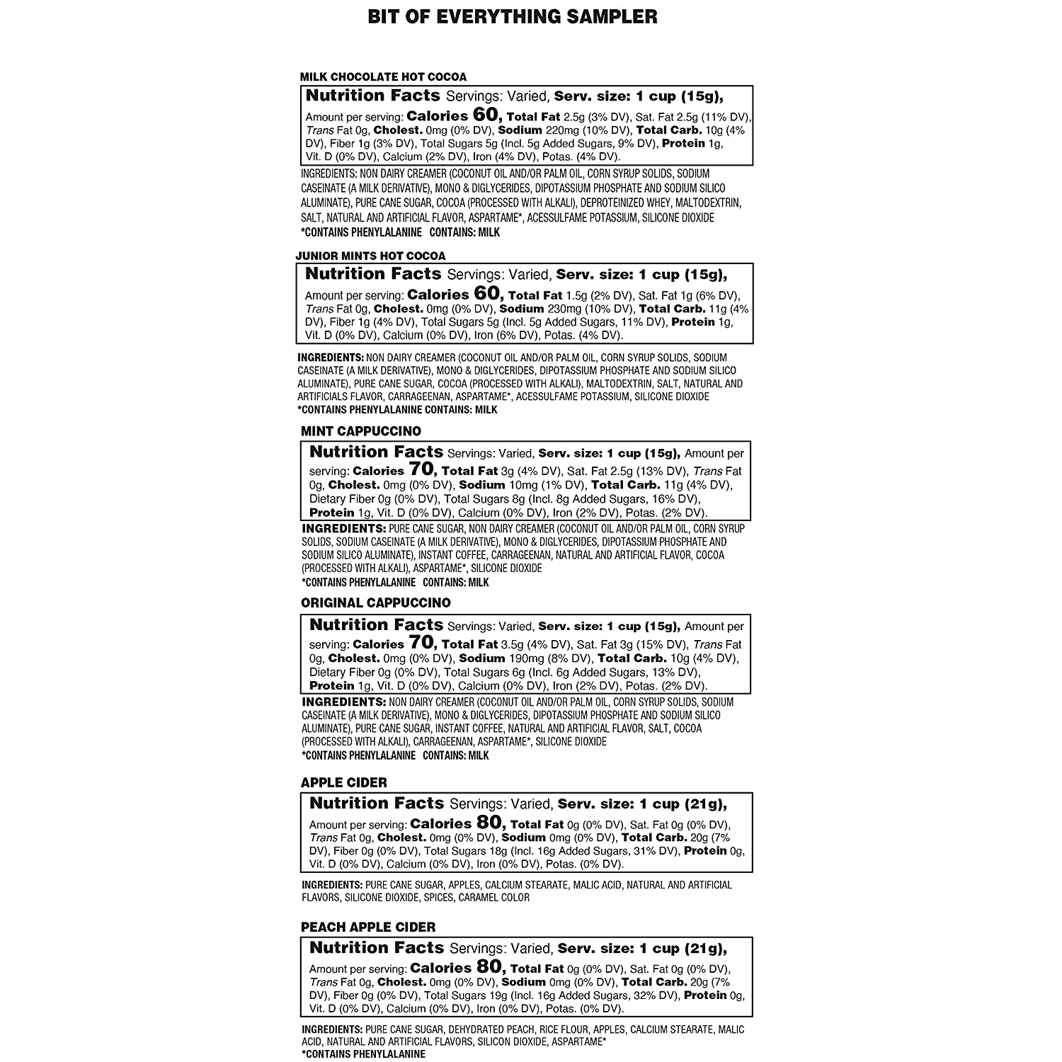Two Rivers Coffee. Tea. Cocoa. Cider. Cappuccino Variety Sampler Pack . 40 count
