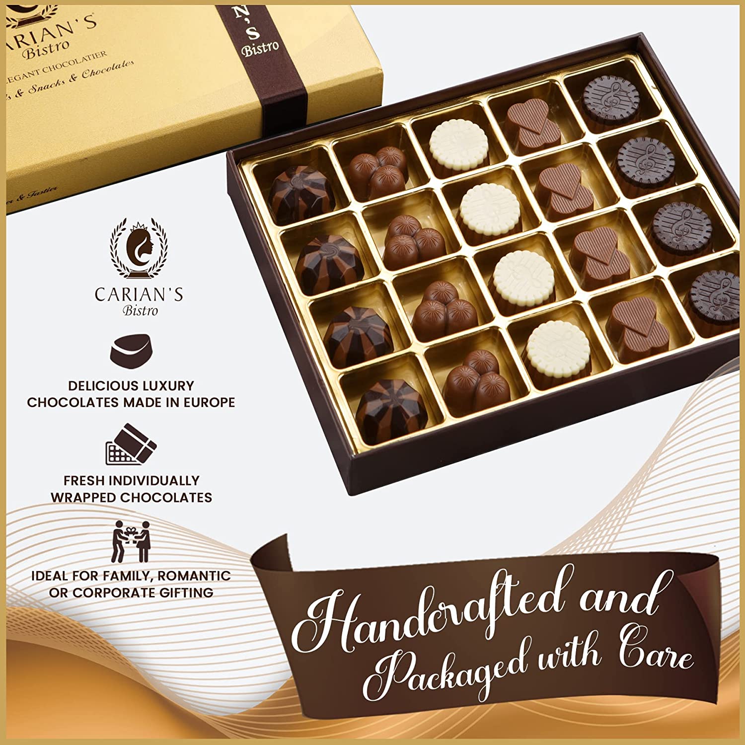 Carian-s Bistro Elegant Chocolatier Specialty Assorted Chocolates w/ Gold Gift Box