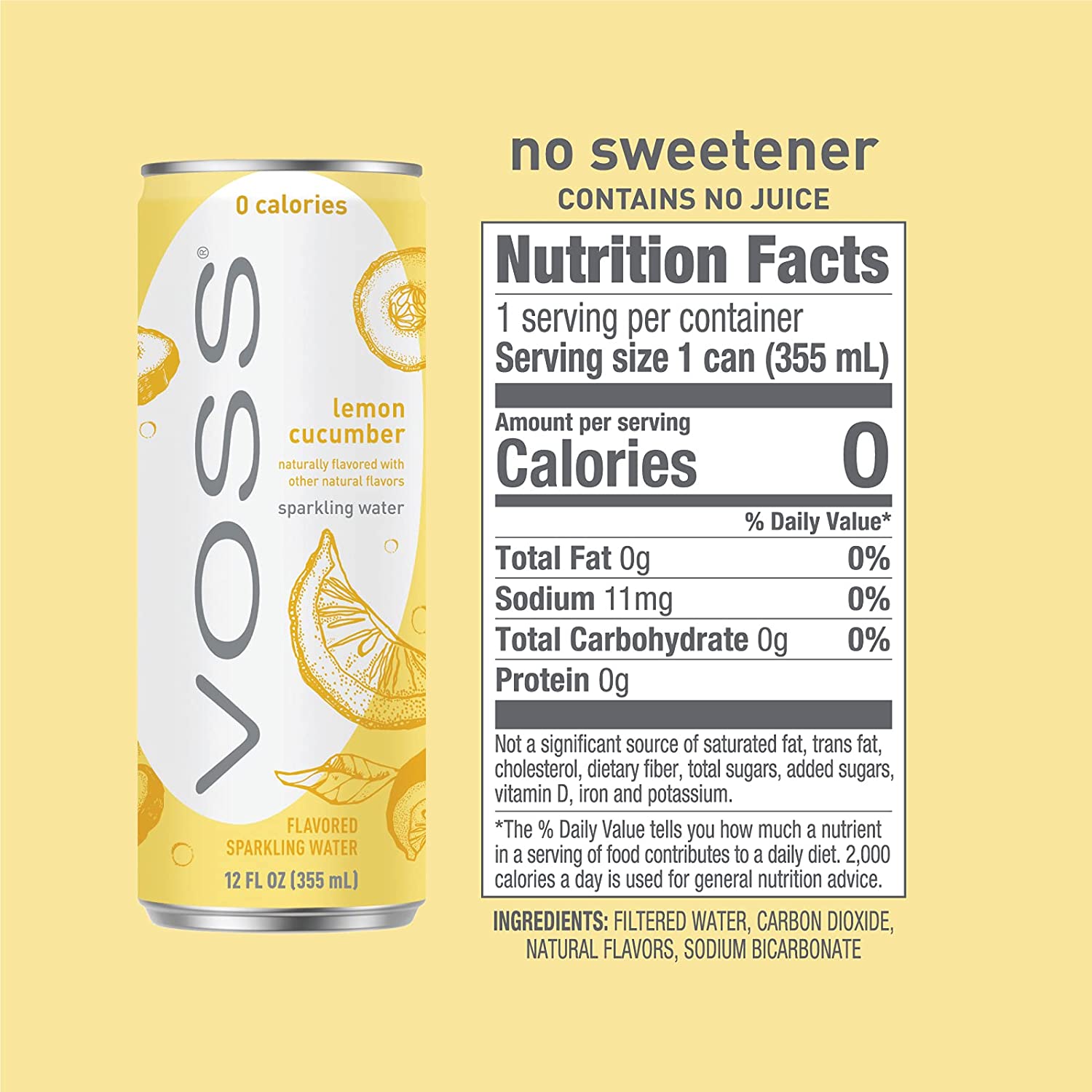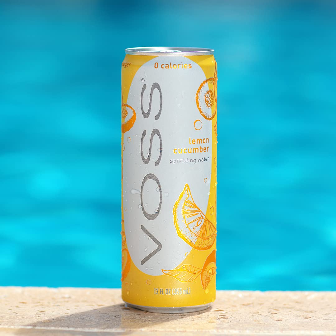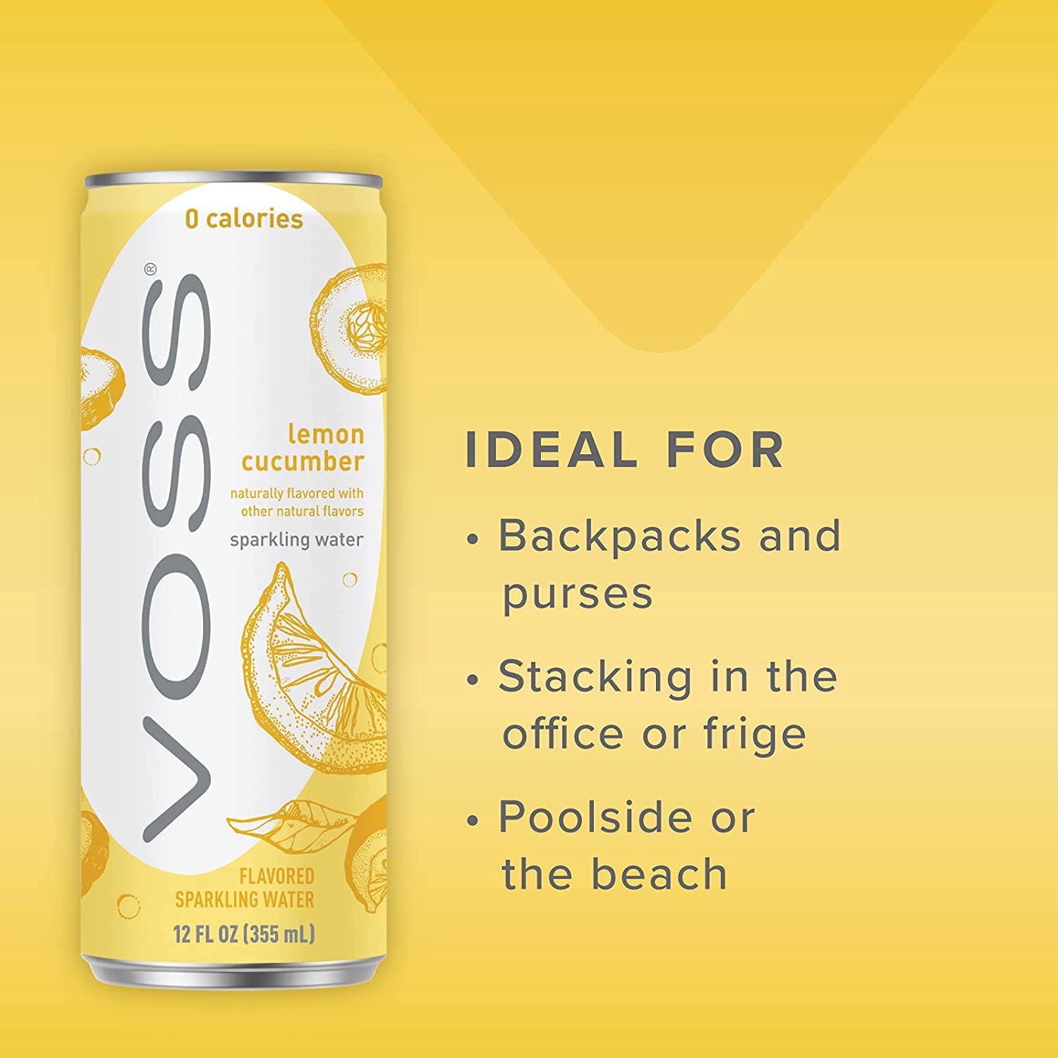 VOSS Lemon Cucumber Flavored Sparkling Water. 355ml Cans (Pack of 24)