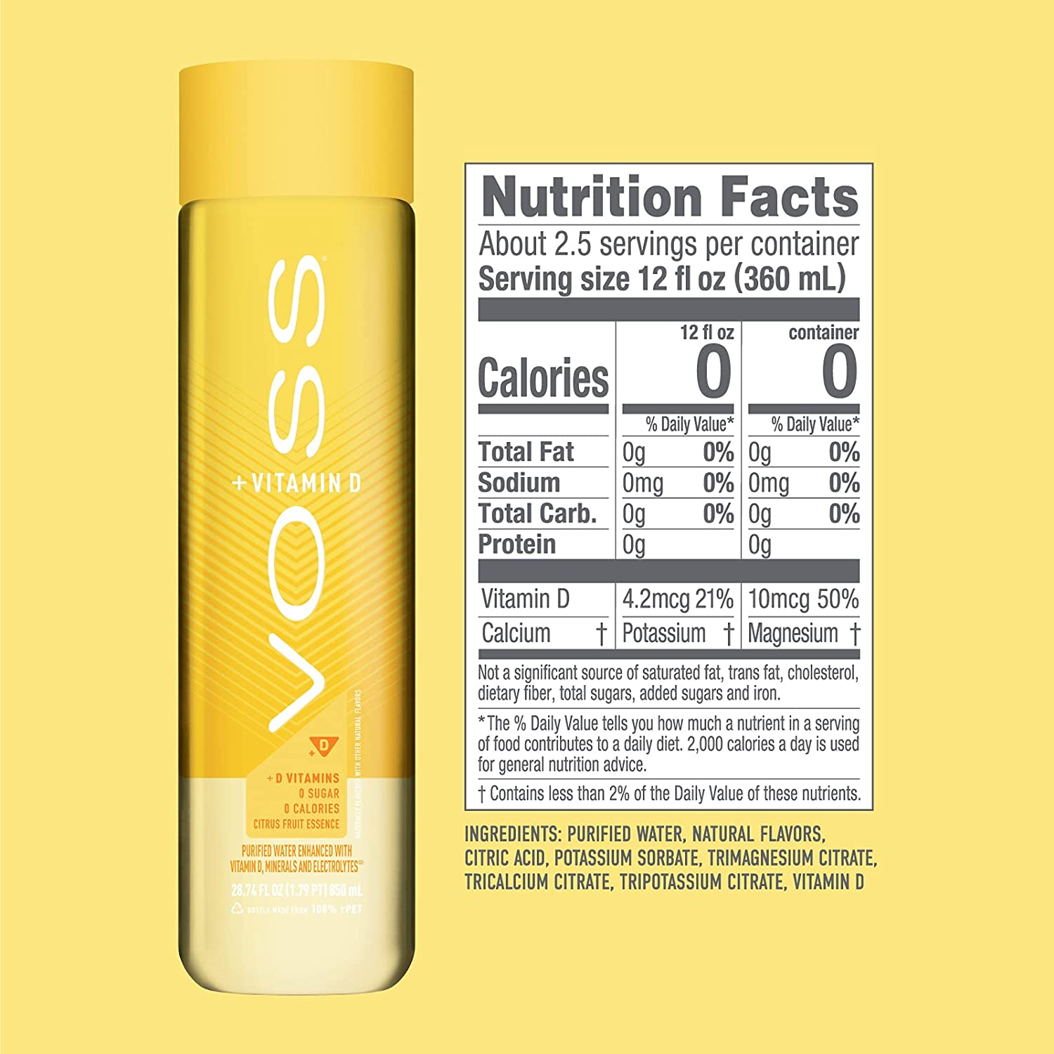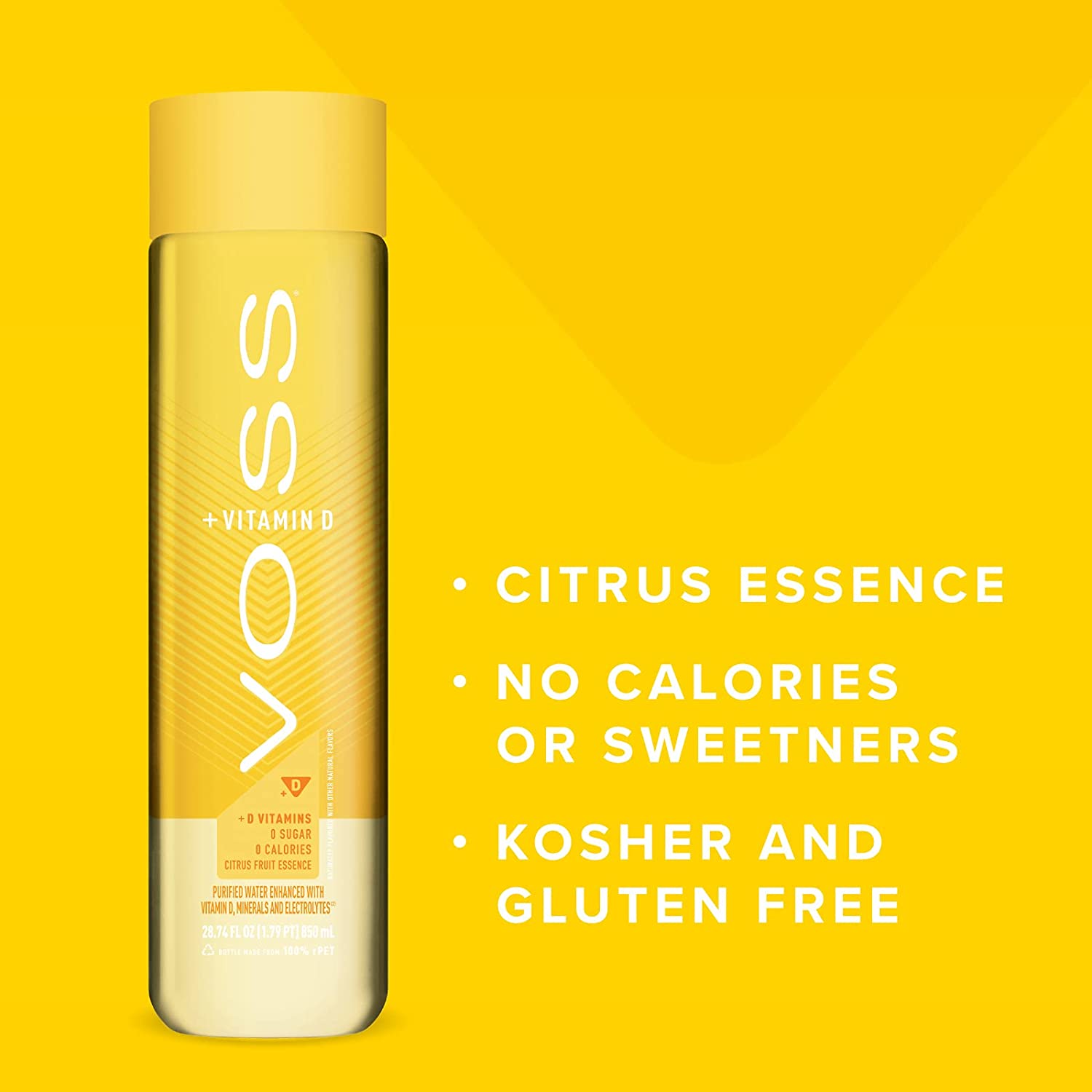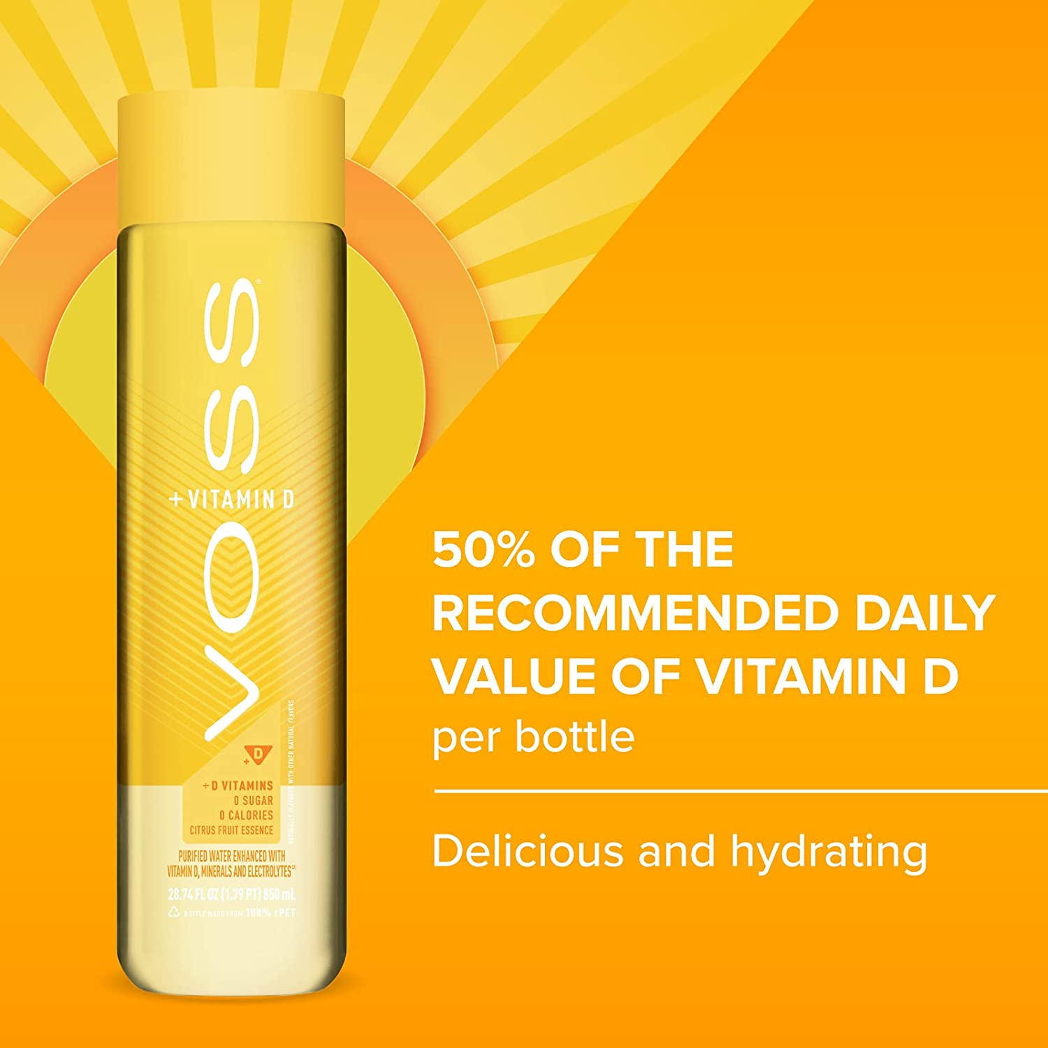 VOSS. Water With Vitamin D & Electrolytes. rPET Plastic Bottles. 850 ml. 12 Count