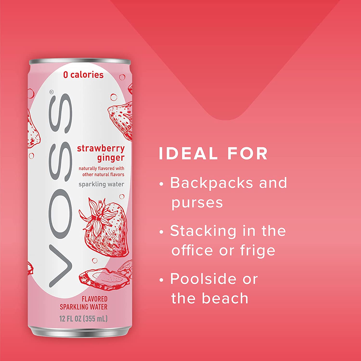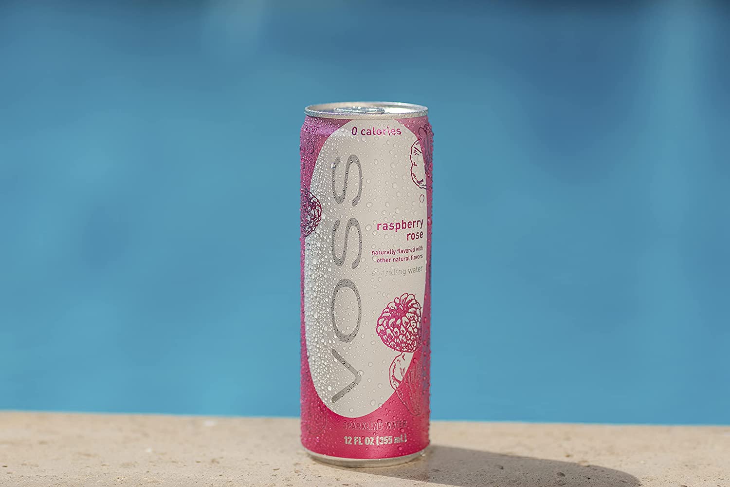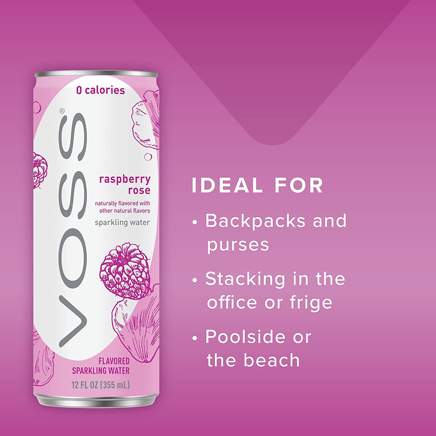 VOSS Raspberry Rose Flavored Sparkling Water. Unsweetened. Zero Calories. 24 Count