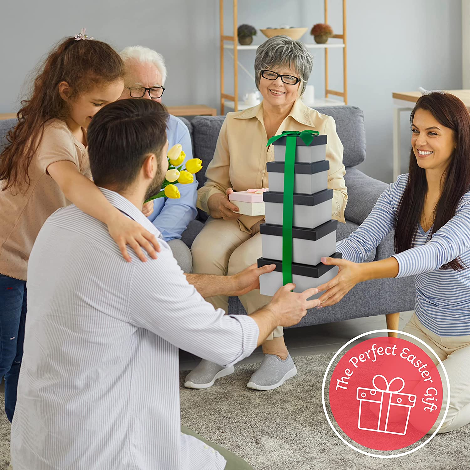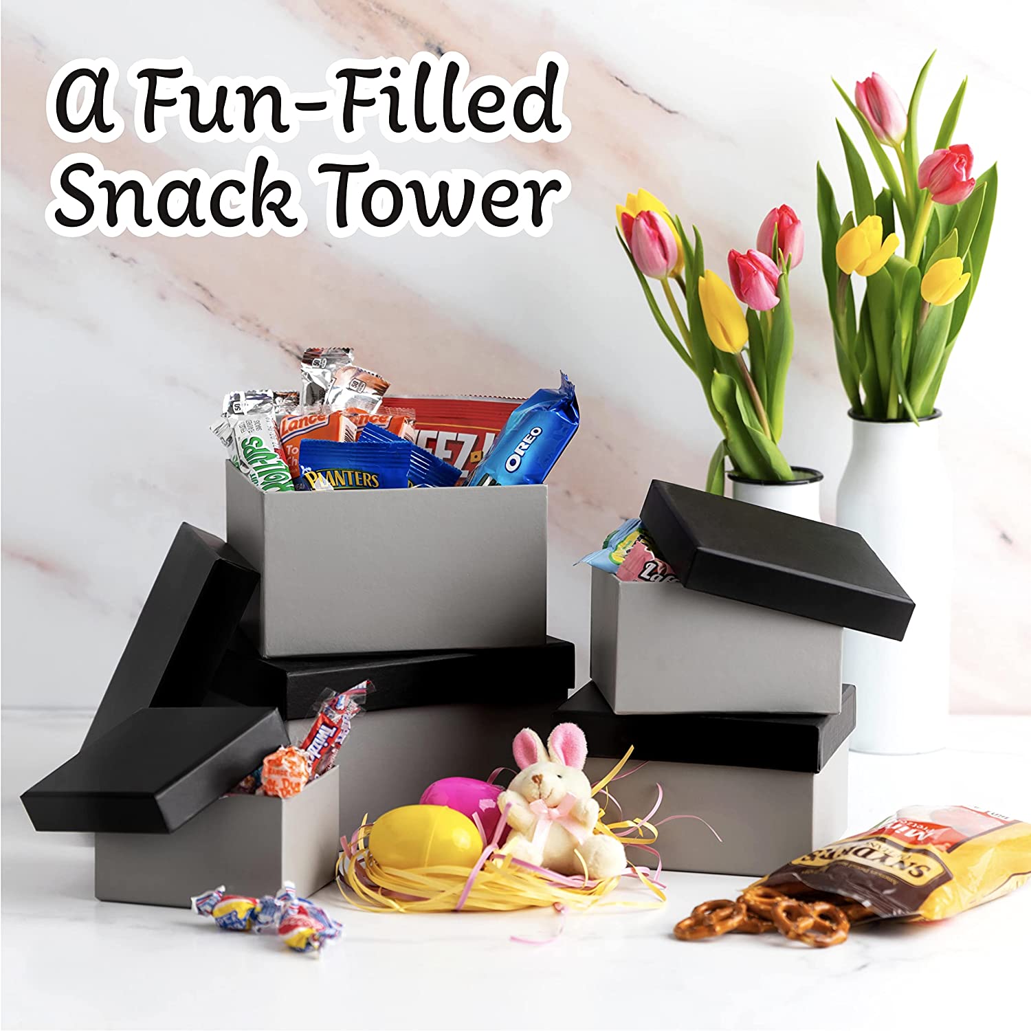 SWEET CHOICE GIFTBASKETS Premade Easter Care Package Tower gift - Candy Snacks Treats