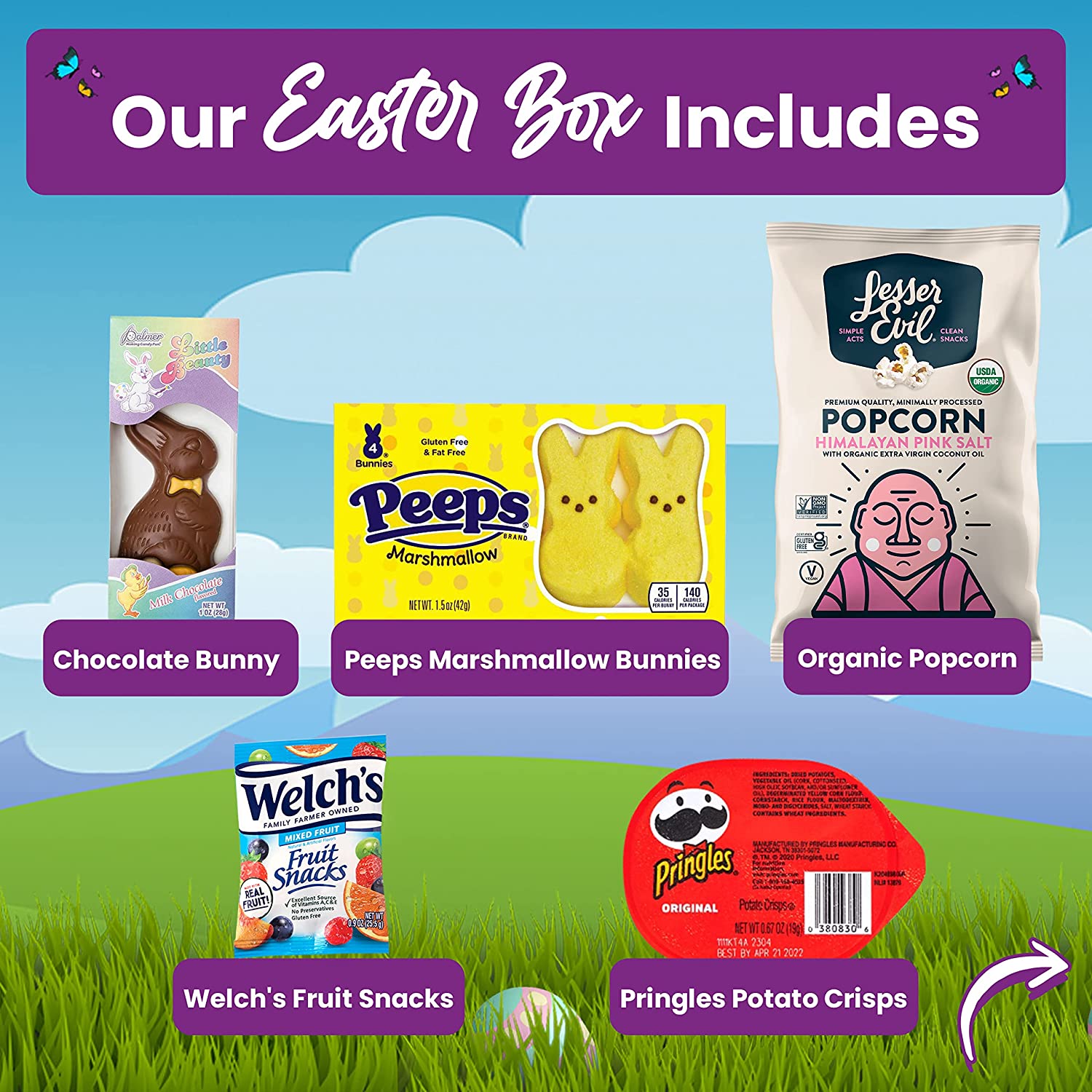 Woodstock Candy - Easter Candy Gift Basket Box Variety Assortment Care Package for Boys Girls w/ Sour Candies