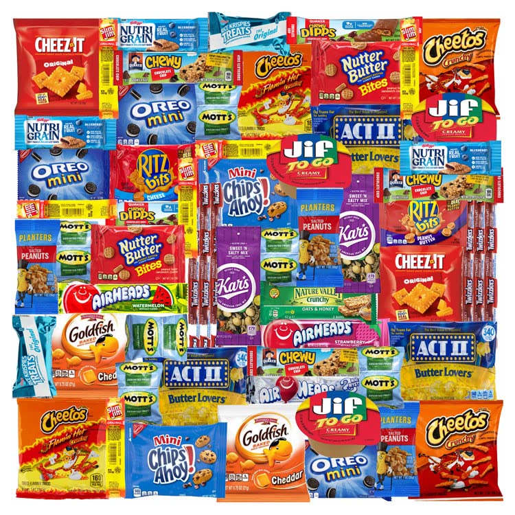 Care Package (52 Count) Ultimate Sampler Mixed Box. Cookies Chips Candy Snacks Box
