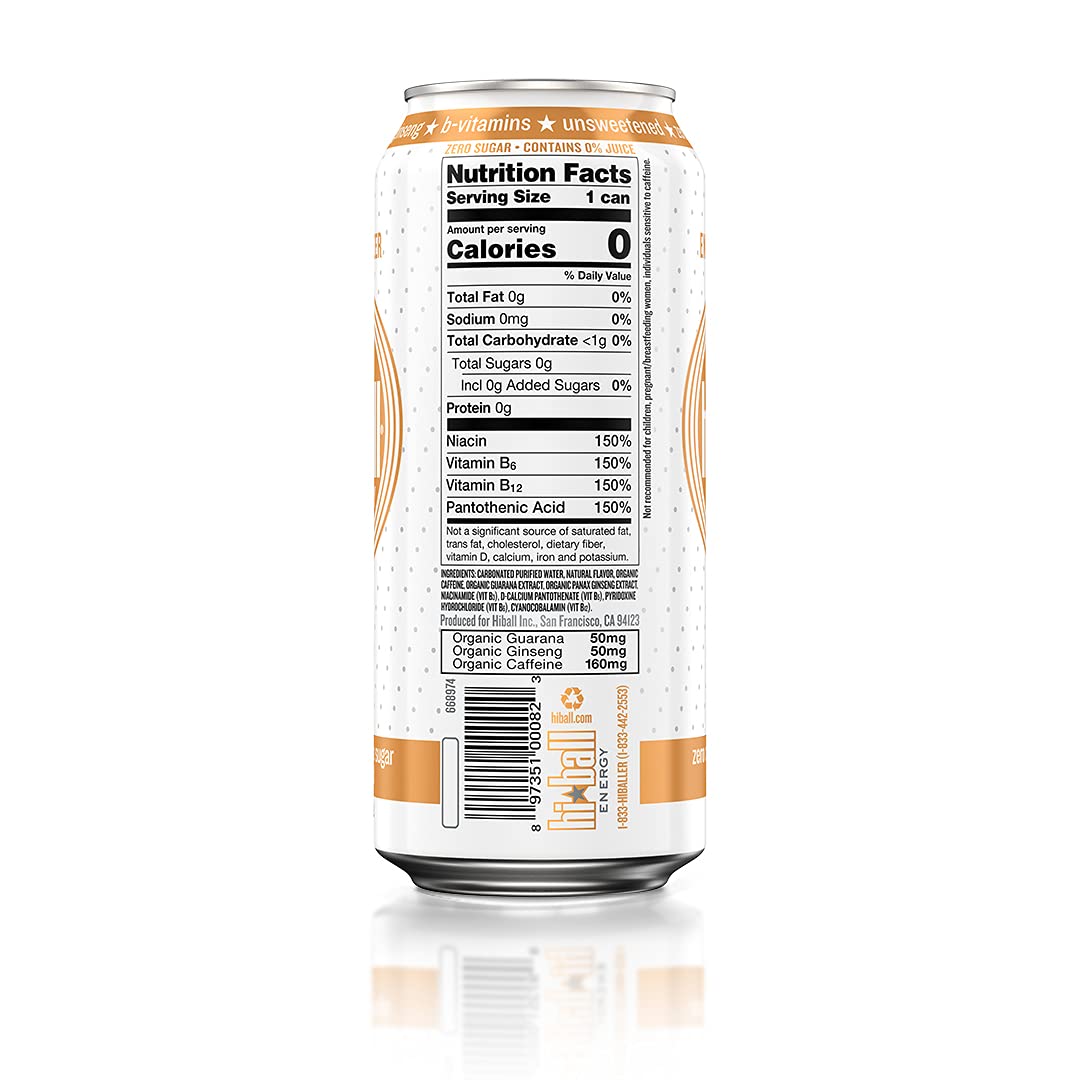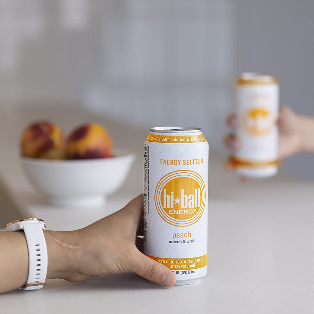 Hiball Energy Seltzer Water. Natural Energy Drink (16 Fl Oz Pack of 8). Peach
