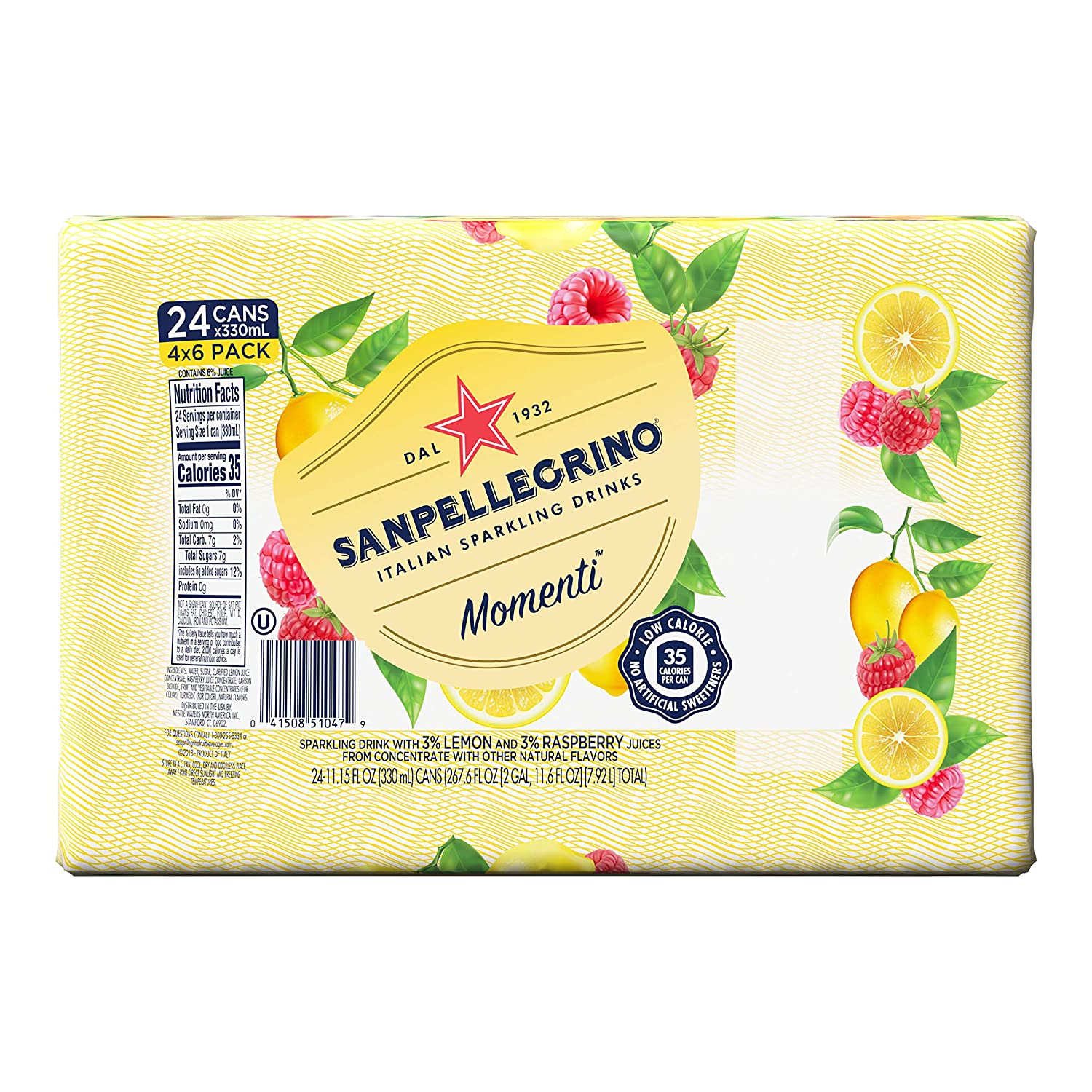 San Pellegrino Momenti Lemon Red Raspberry 11.15 fl oz. Cans (24 Count)