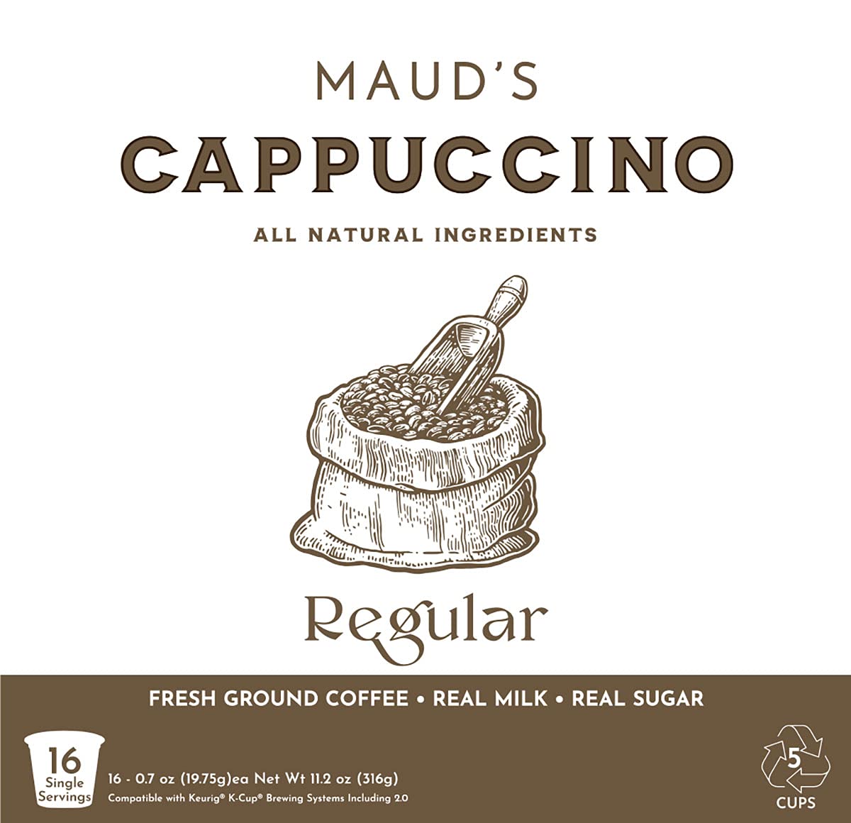 Maud-s Classic Cappuccino Coffee Pods (Medium Dark Roast) 16ct Pods. 100% Arabica Coffee