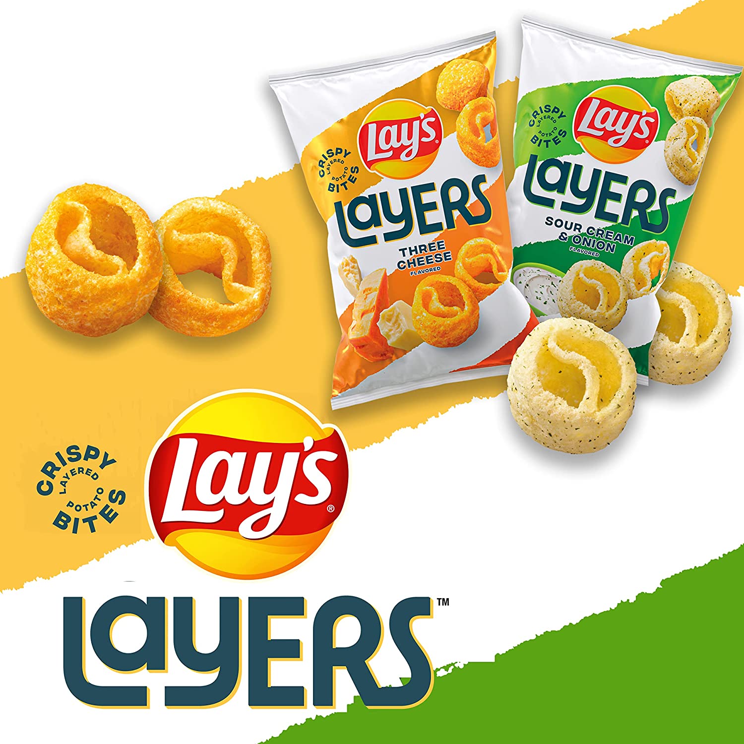 Lay-s Layers Crispy Bite Sized Potato Snacks. 2 Flavor Variety Pack. 0.5oz Bags. (36 Pack)