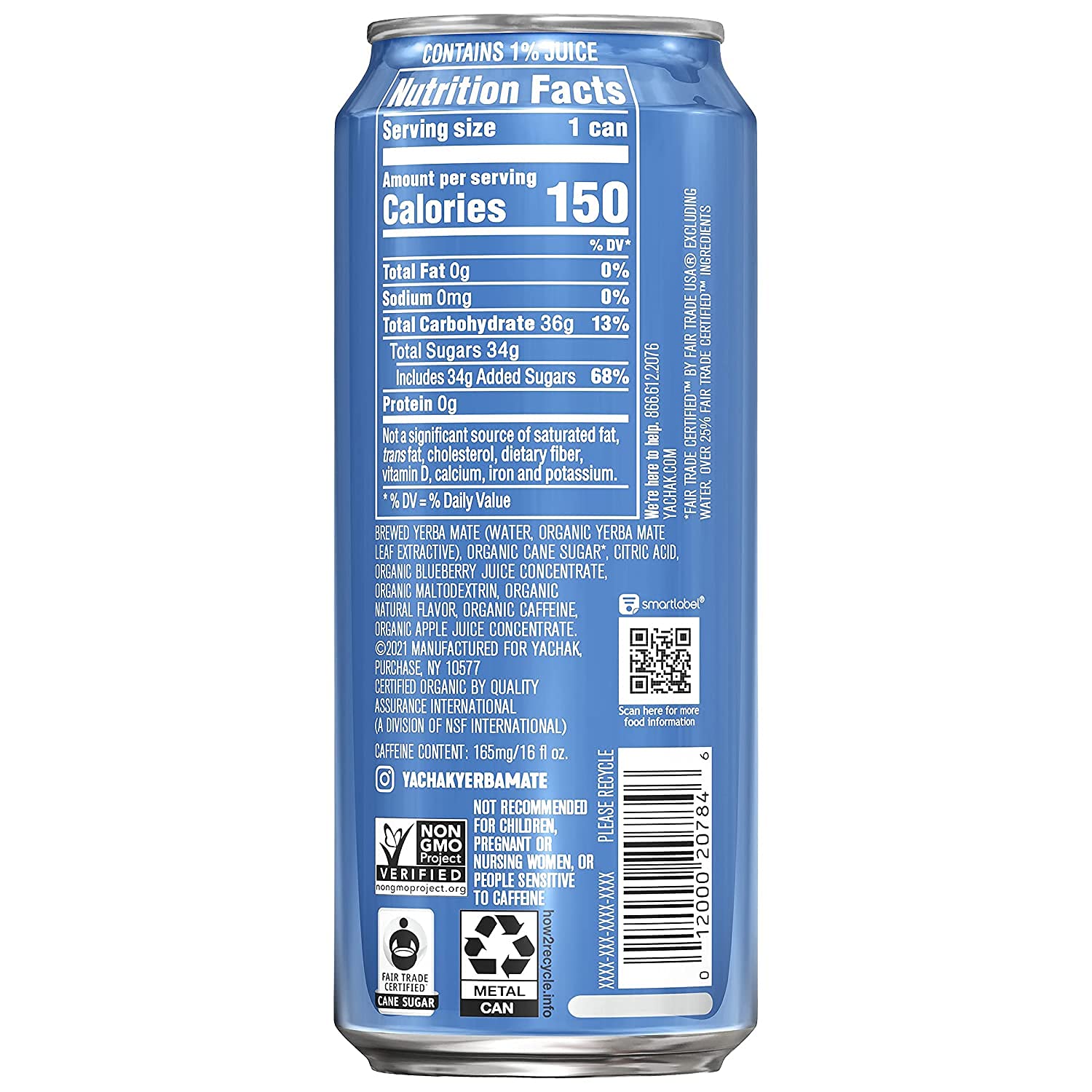 Yachak Yerba Mate Drink. Blackberry. 16 Fl Oz Cans. Pack of 12