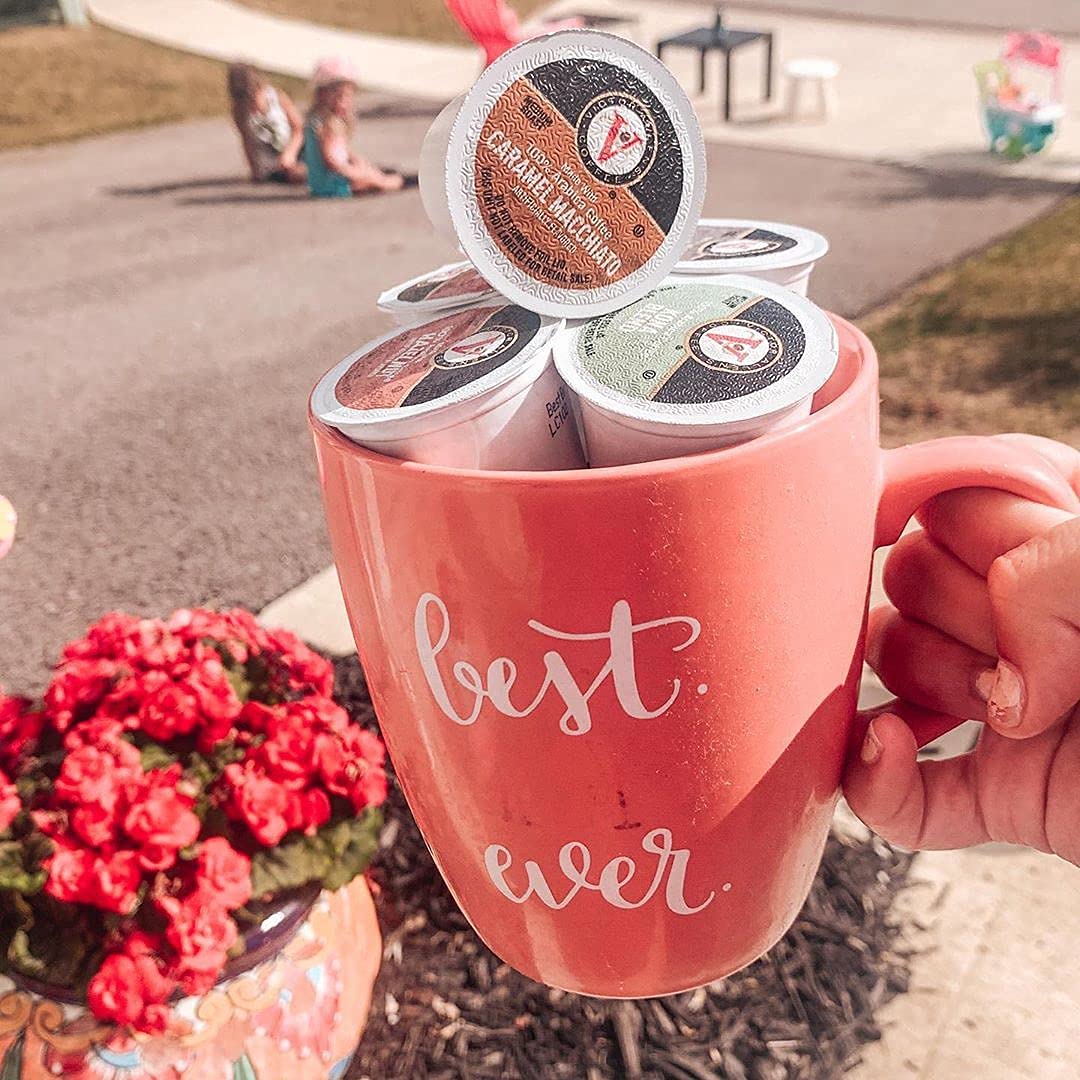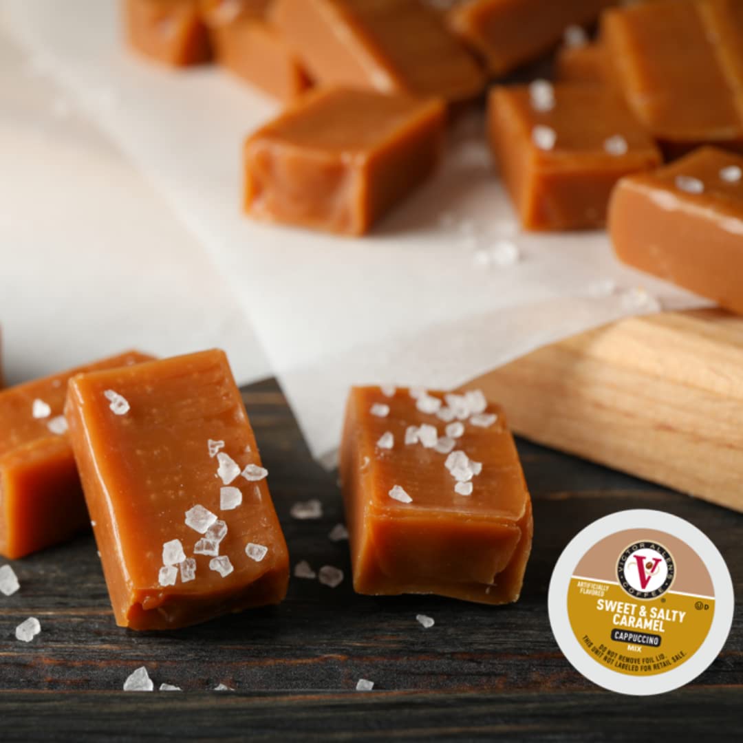 Victor Allen-s Coffee Sweet and Salty Caramel Cappuccino. Flavored Coffee. 42 Count Single Serve Coffee Pods for Keurig K-Cup Brewers