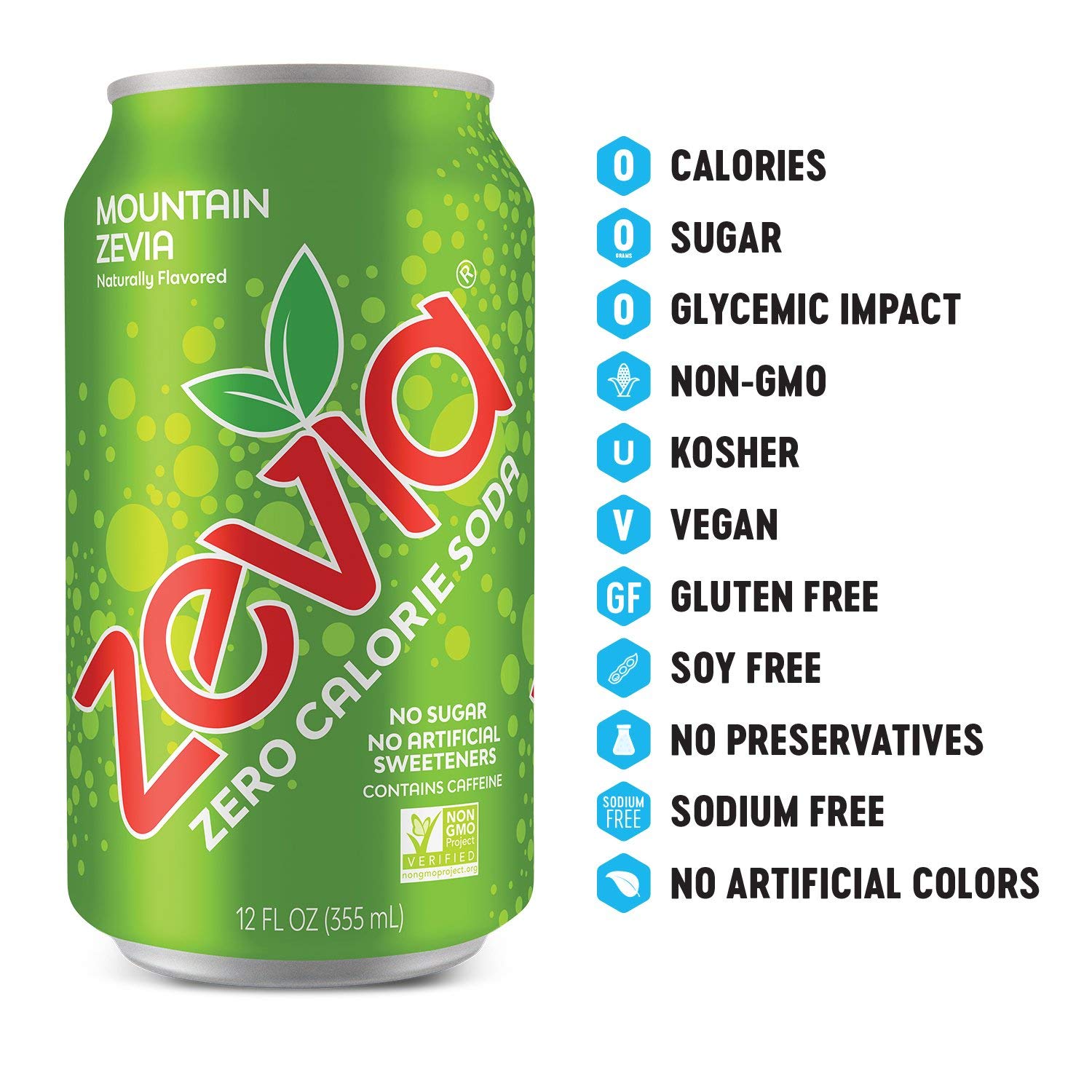 Zevia Zero Calorie Soda. Mountain Zevia. 12 Ounce Cans (Pack of 24)