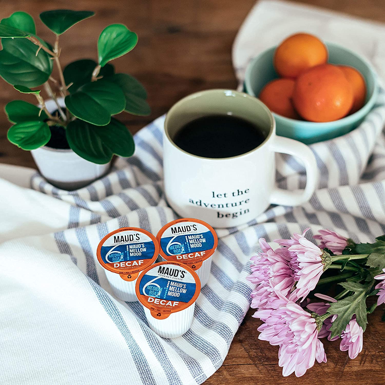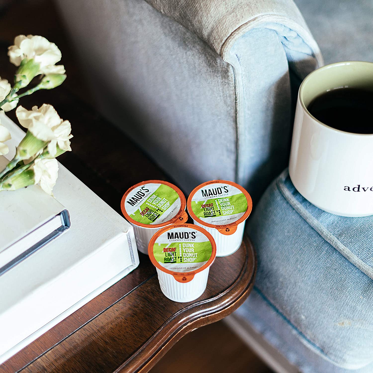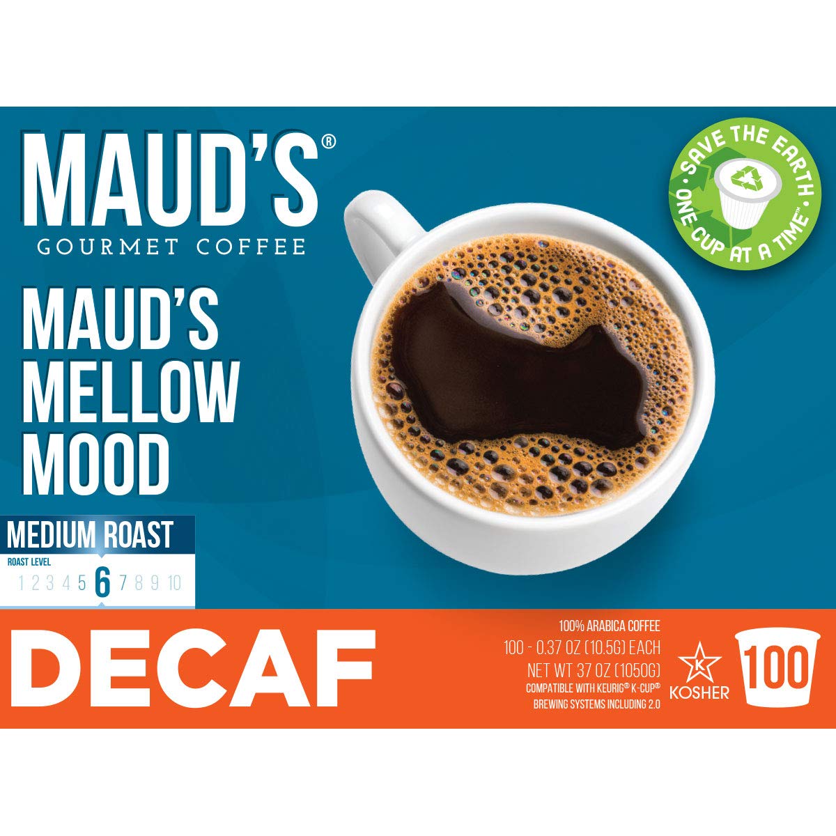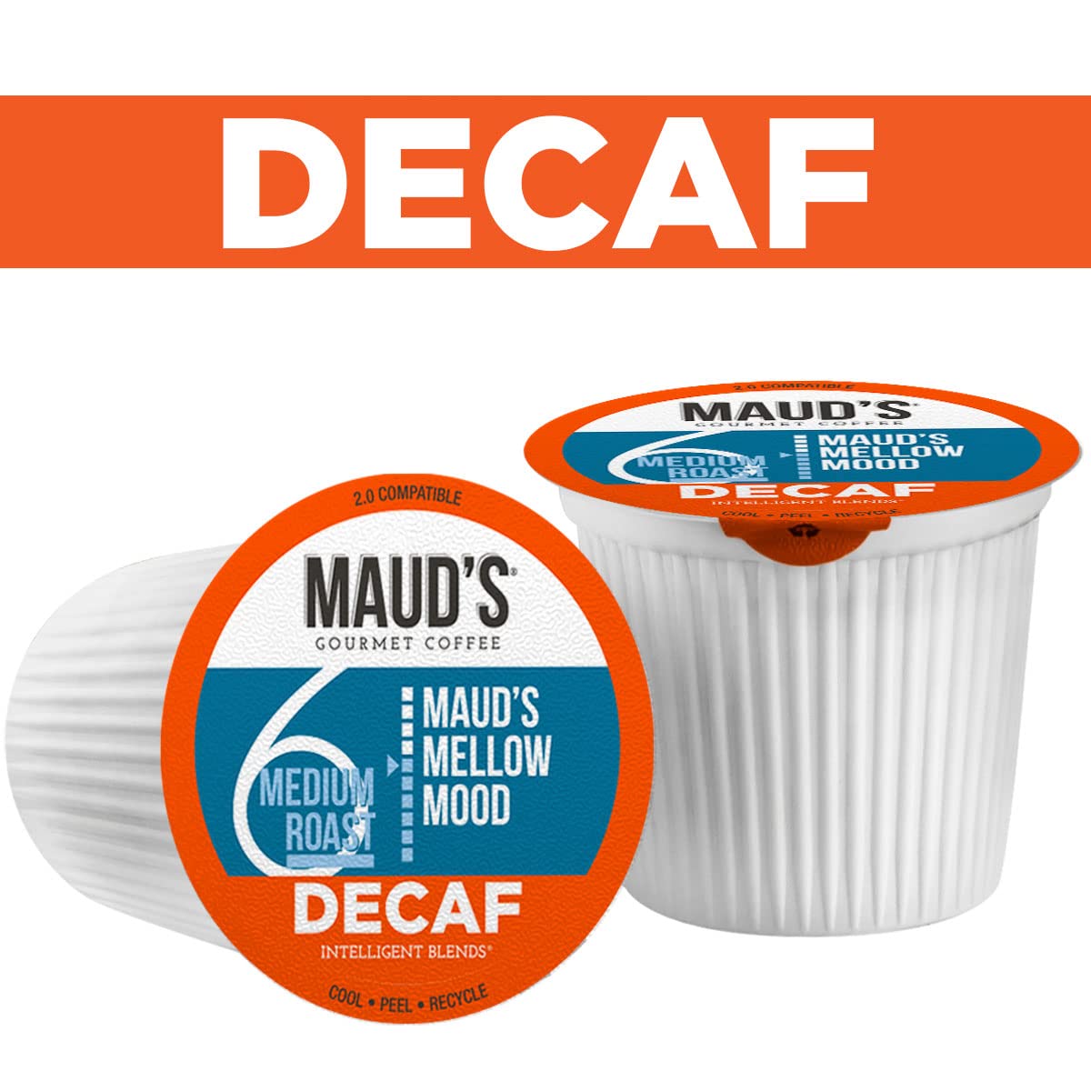 Maud's Decaf Medium Dark Roast Coffee (Mellow Mood). 100ct. Solar Energy Produced Recyclable Single Serve Decaf Medium Dark Roast Coffee Pods – 100% Arabica Coffee California Roasted. KCup Compatible