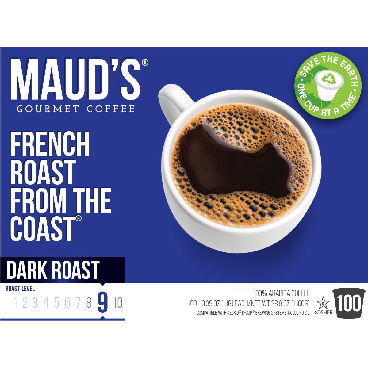 Maud-s French Roast Coffee (French Roast From The Coast). 100ct. Solar Energy Produced Recyclable Single Serve French Roast Coffee Pods – 100% Arabica Coffee California Roasted. KCup Compatible