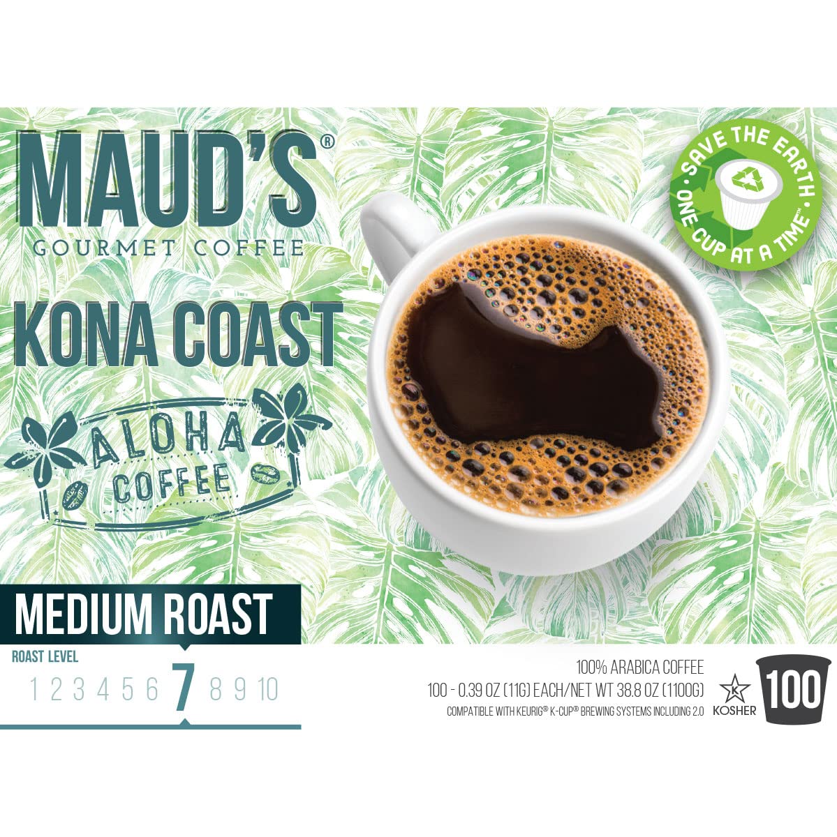 Maud-s Kona Coffee Blend (Kona Coast). 100ct. Solar Energy Produced Recyclable Single Serve Medium Dark Roast Kona Coffee Pods – 100% Arabica Coffee California Roasted. Kona K Cup Compatible