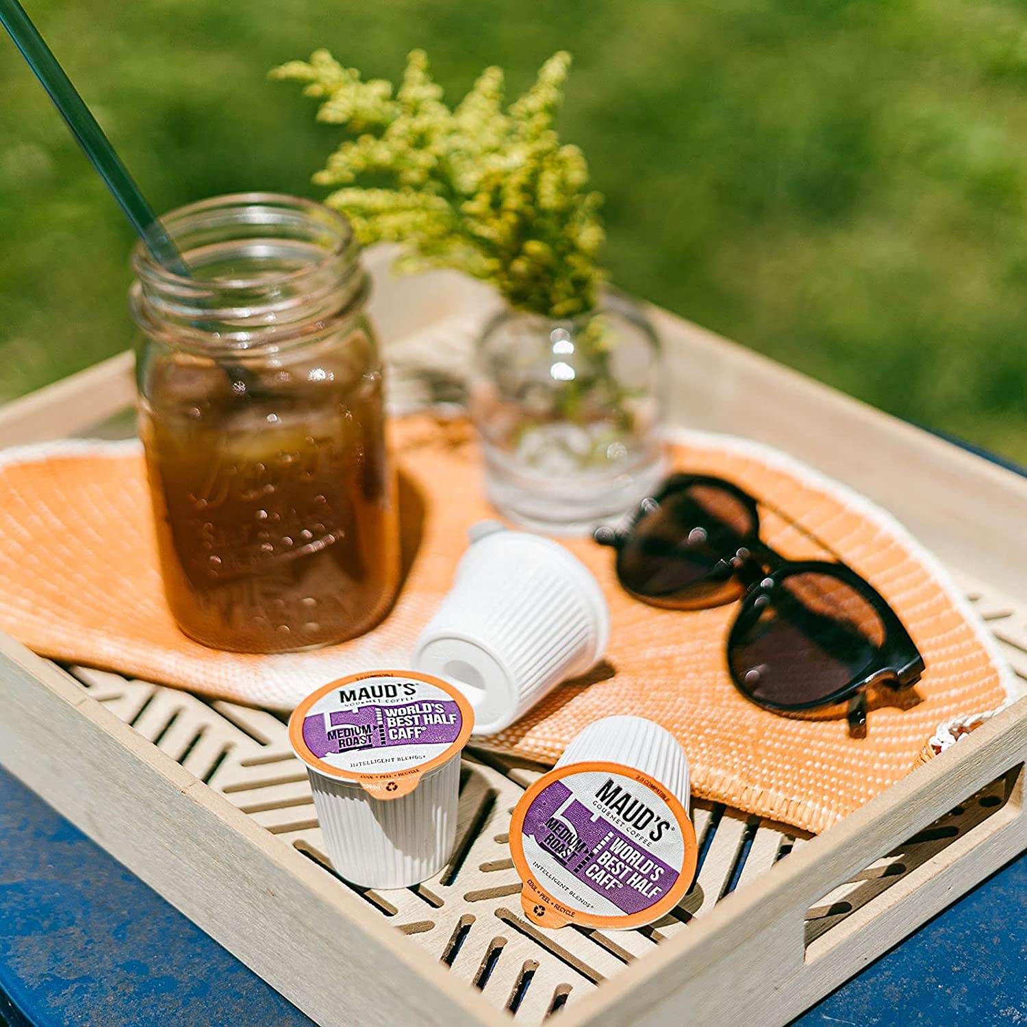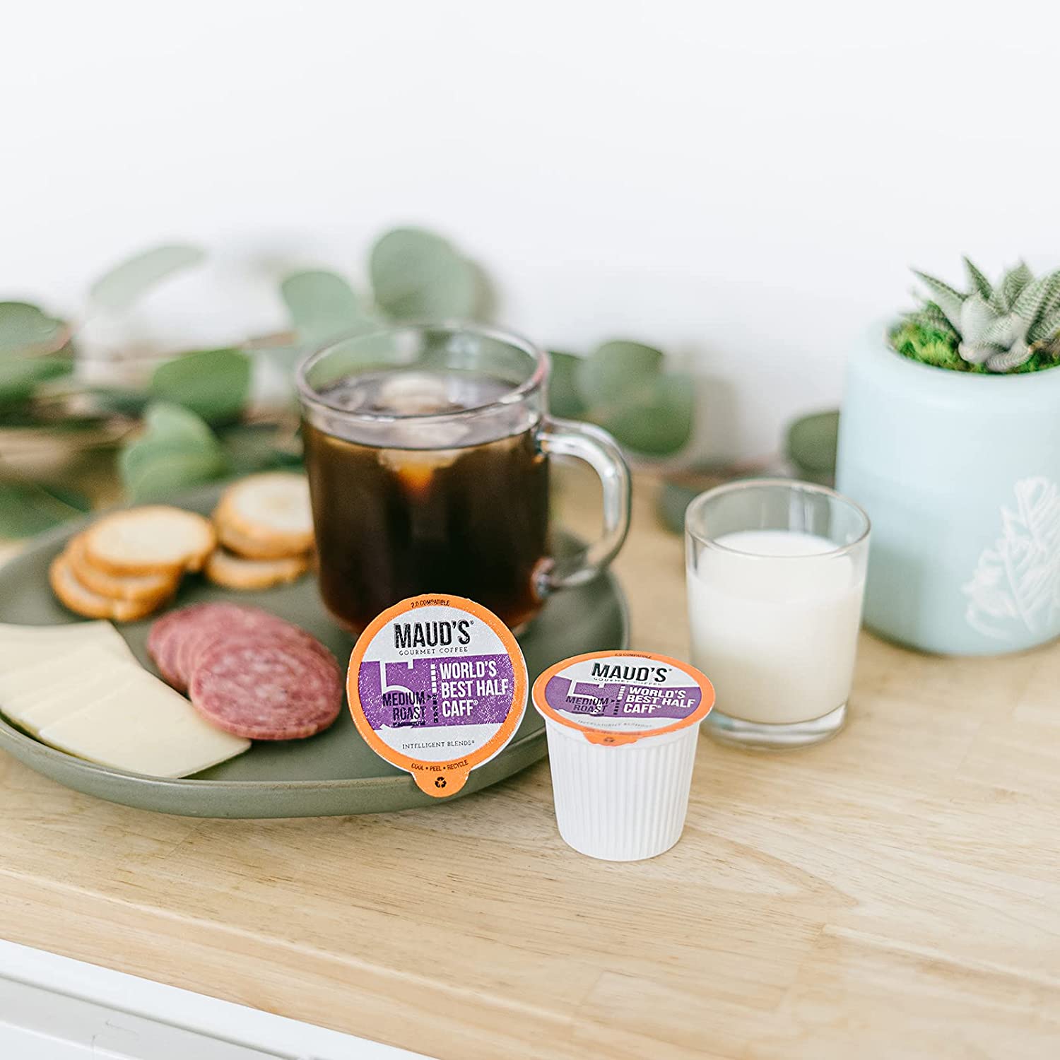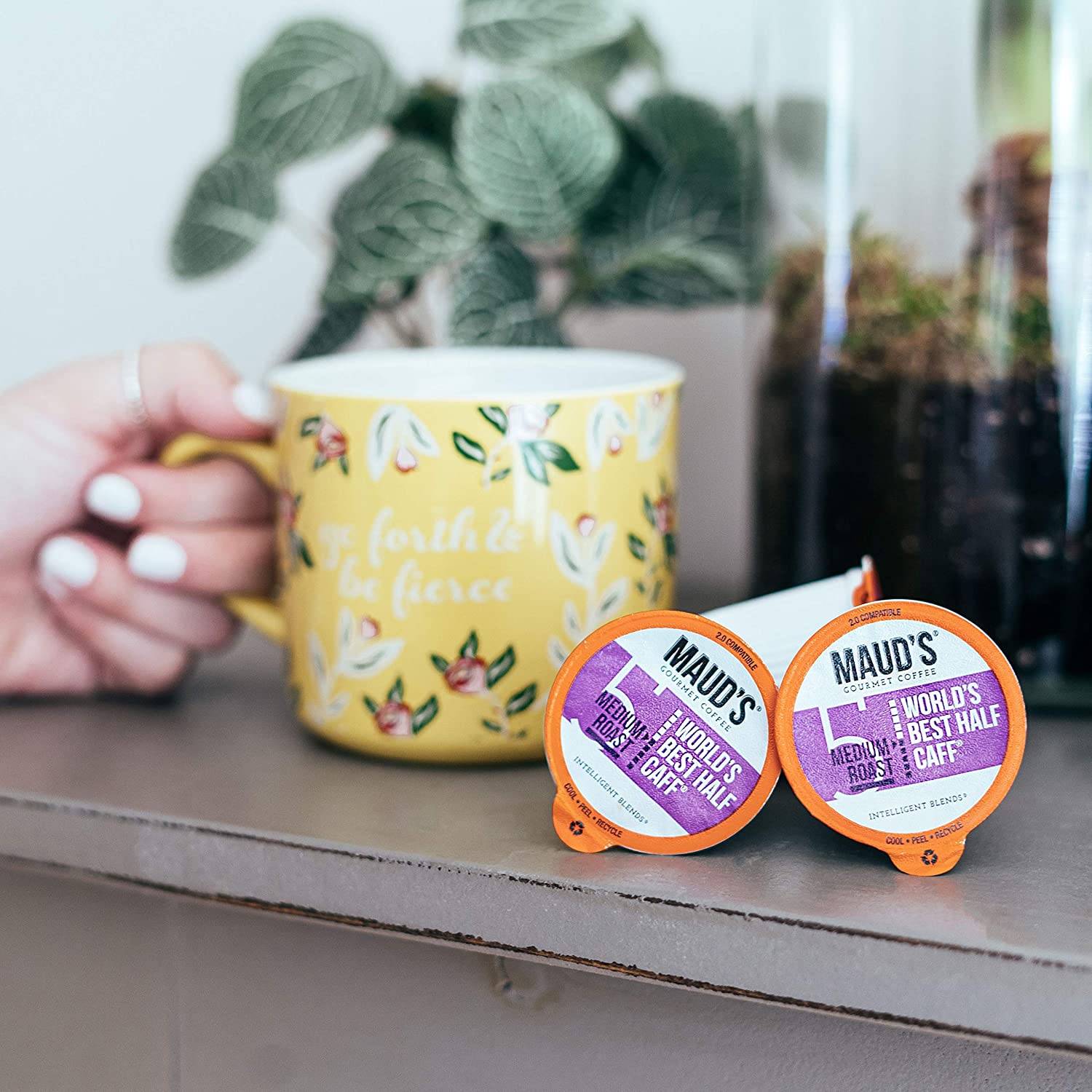 Maud-s Half Caff Coffee (World-s Best Half Caff). 100ct. Solar Energy Produced Recyclable Single Serve Medium Roast Half Caff Coffee Pods – 100% Arabica Coffee California Roasted. KCup Compatible