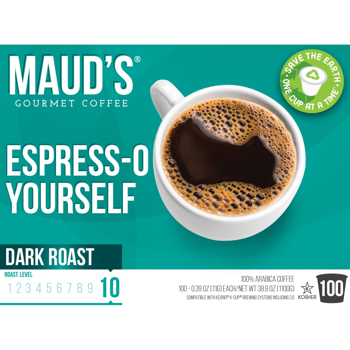 Maud-s Espresso Coffee Dark Roast (Espress-O Yourself). 100ct. Solar Energy Produced Recyclable Single Serve Coffee Pods - Richly Satisfying Arabica Beans California Roasted. Espresso KCup Compatible