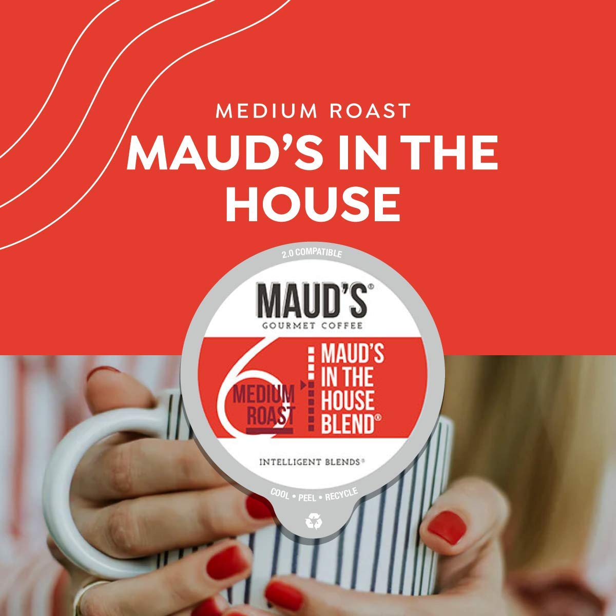 Maud-s Medium Dark Roast Coffee (In The House Blend). 100ct. Solar Energy Produced Recyclable Single Serve Medium Dark Roast Coffee Pods – 100% Arabica Coffee California Roasted. KCup Compatible