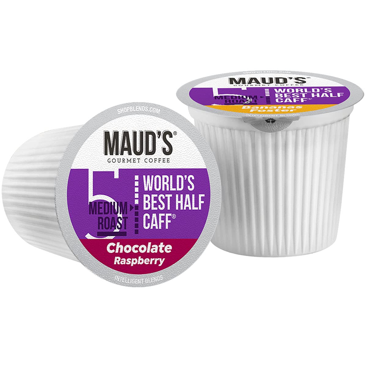 Maud-s World-s Best Half Caff Variety Pack (6 Flavors). 48ct. Solar Energy Produced Recyclable Single Serve Half Caff Flavored Coffee Pods. 100% Arabica Coffee California Roasted. KCup Compatible