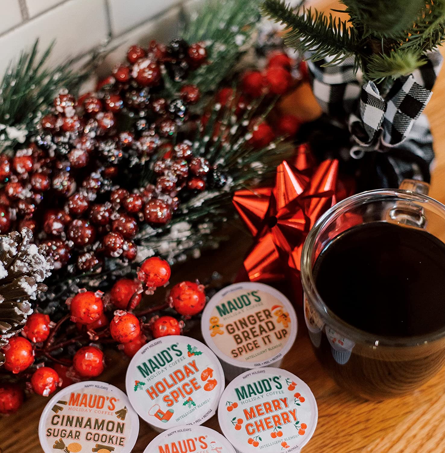 Maud-s Winter Flavored Coffee Variety Pack (Holiday Variety Pack). 42ct. Solar Energy Produced Recyclable Winter Flavored Variety Coffee Pods - 100% Arabica Coffee California Roasted. KCup Compatible