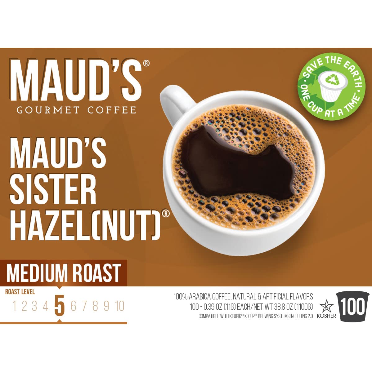 Maud-s Sweet Hazelnut Coffee (Sister Hazelnut). 100ct. Solar Energy Produced Recyclable Single Serve Sweet Hazelnut Flavored Coffee Pods – 100% Arabica Coffee California Roasted. KCup Compatible
