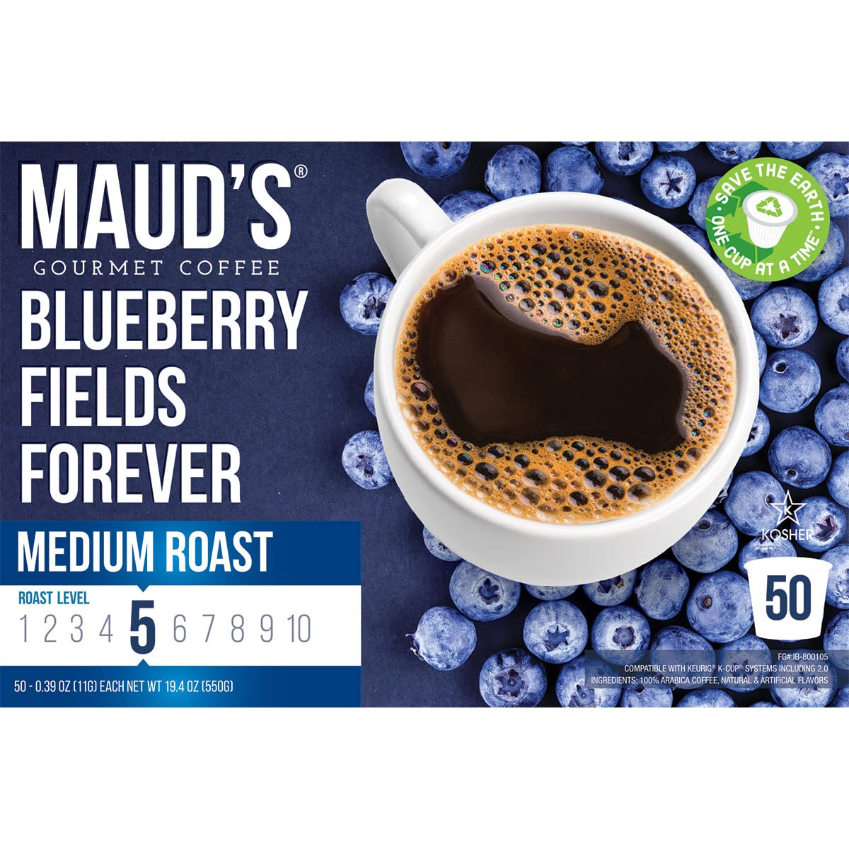 Maud-s Blueberry Coffee (Blueberry Fields Forever). 50ct. Solar Energy Produced Recyclable Single Serve Flavored Blueberry Coffee Pods – 100% Arabica Coffee California Roasted. KCup Compatible