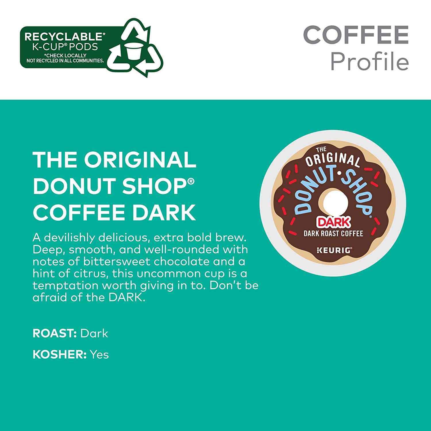 The Original Donut Shop Dark Coffee. Keurig Single-Serve K-Cup Pods. Dark Roast. 32 Count