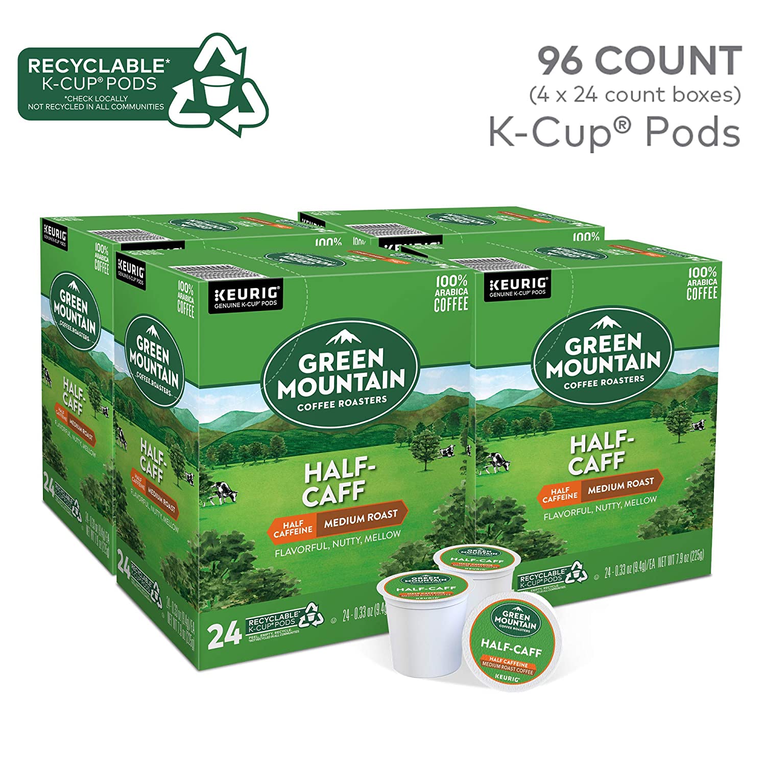 Green Mountain Coffee Roasters Half Caff. Single-Serve Keurig K-Cup Pods. Medium Roast Coffee. 96 Count