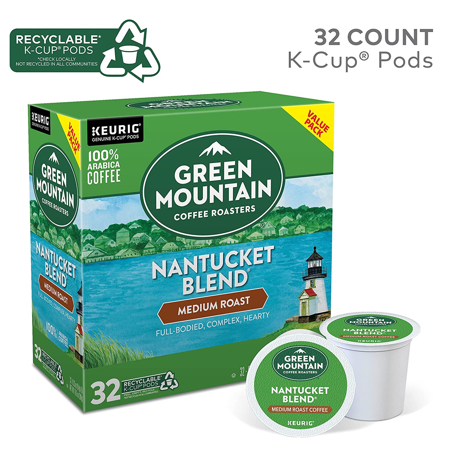 Green Mountain Coffee Roasters Nantucket Blend. Single-Serve Keurig K-Cup Pods. Medium Roast Coffee. 32 Count