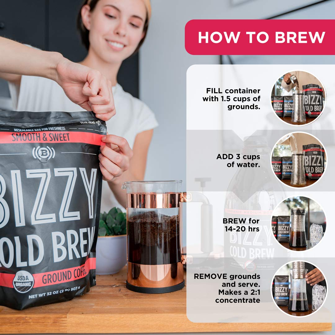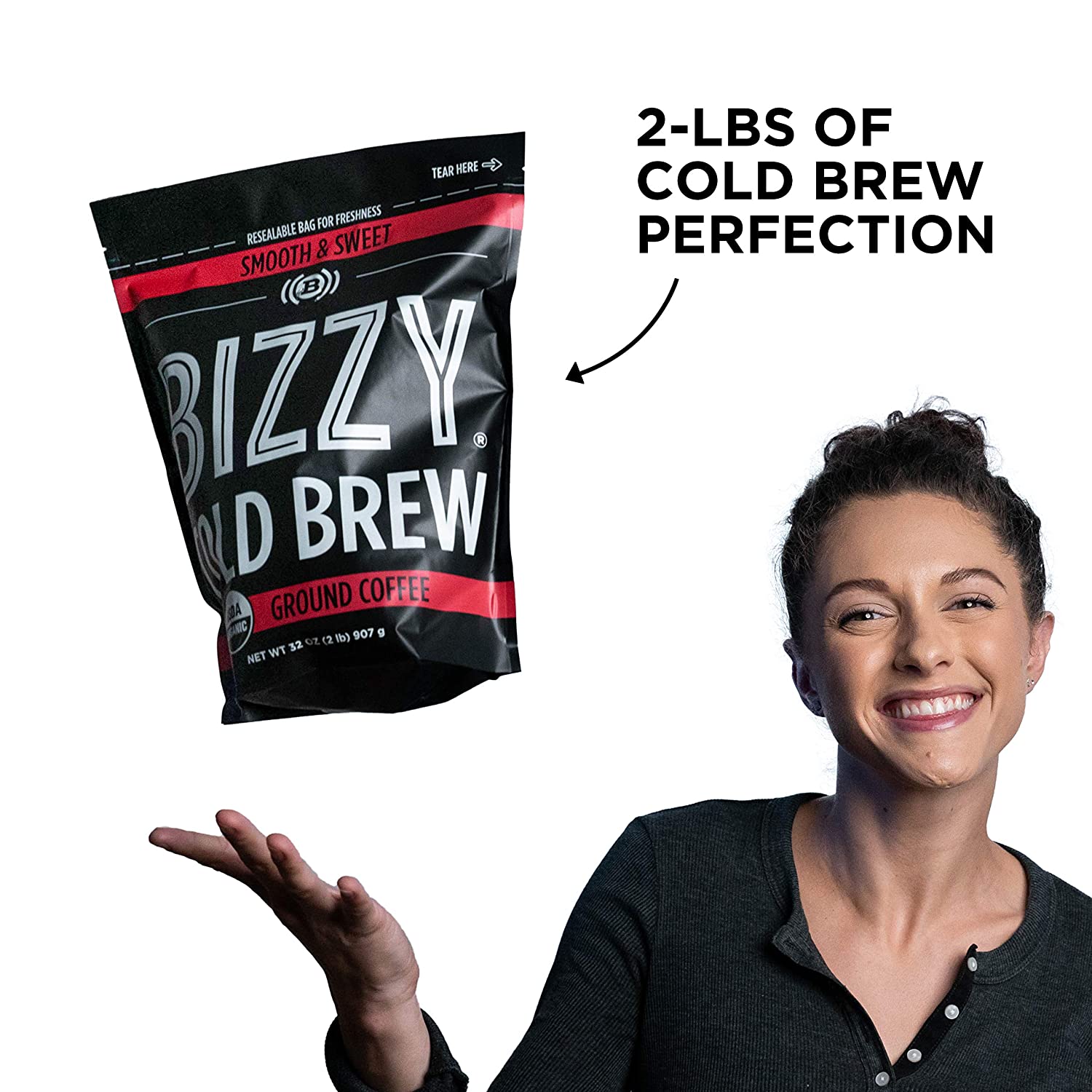 Bizzy Organic Cold Brew Coffee | Smooth & Sweet Blend | Coarse Ground Coffee | Micro Sifted | Specialty Grade | 100% Arabica | 2 LB