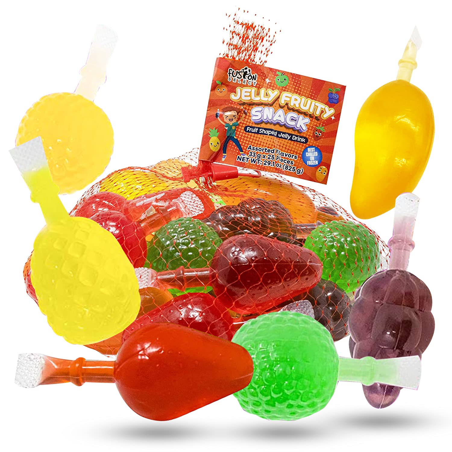 Fusion Select Jelly Fruit Snack Tik Tok Challenge Hit or Miss - Fruit-Shaped Jelly- Assorted Flavors. Strawberry. Orange. Apple. Pineapple. Grape. Mango (2 Mesh Bag)