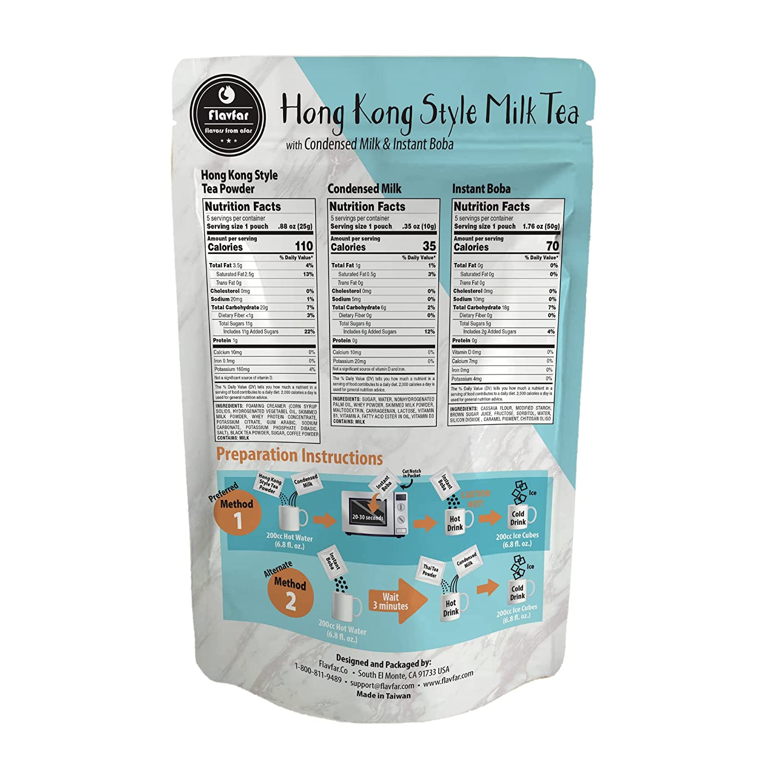 Flavfar Hong Kong Style Milk Tea with Instant Tapioca Pearls - Authentic Yuenyeung Milk Bubble Tea Kit with Low Calorie. Brown Sugar Boba & Sweetened Condensed Milk - All Natural & Made in Taiwan - 5 Pack (Hong Kong Milk Tea)