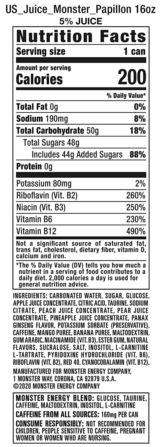 Monster Energy Juice Monster. Energy + Juice. Papillon. 16 Fl Oz (Pack of 24)