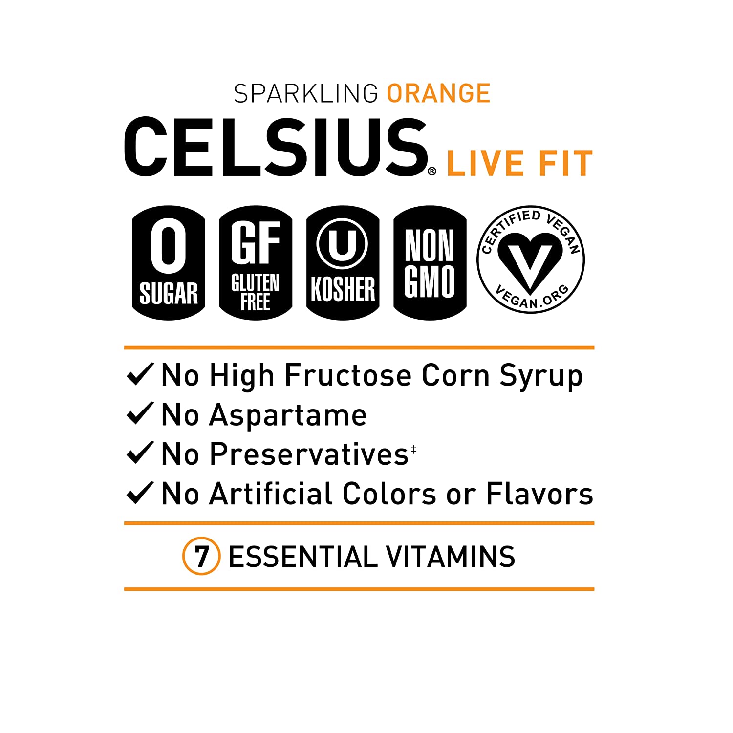 CELSIUS Essential Energy Drink 12 Fl Oz. ZERO Sugar. Sparkling Orange (Pack of 12)