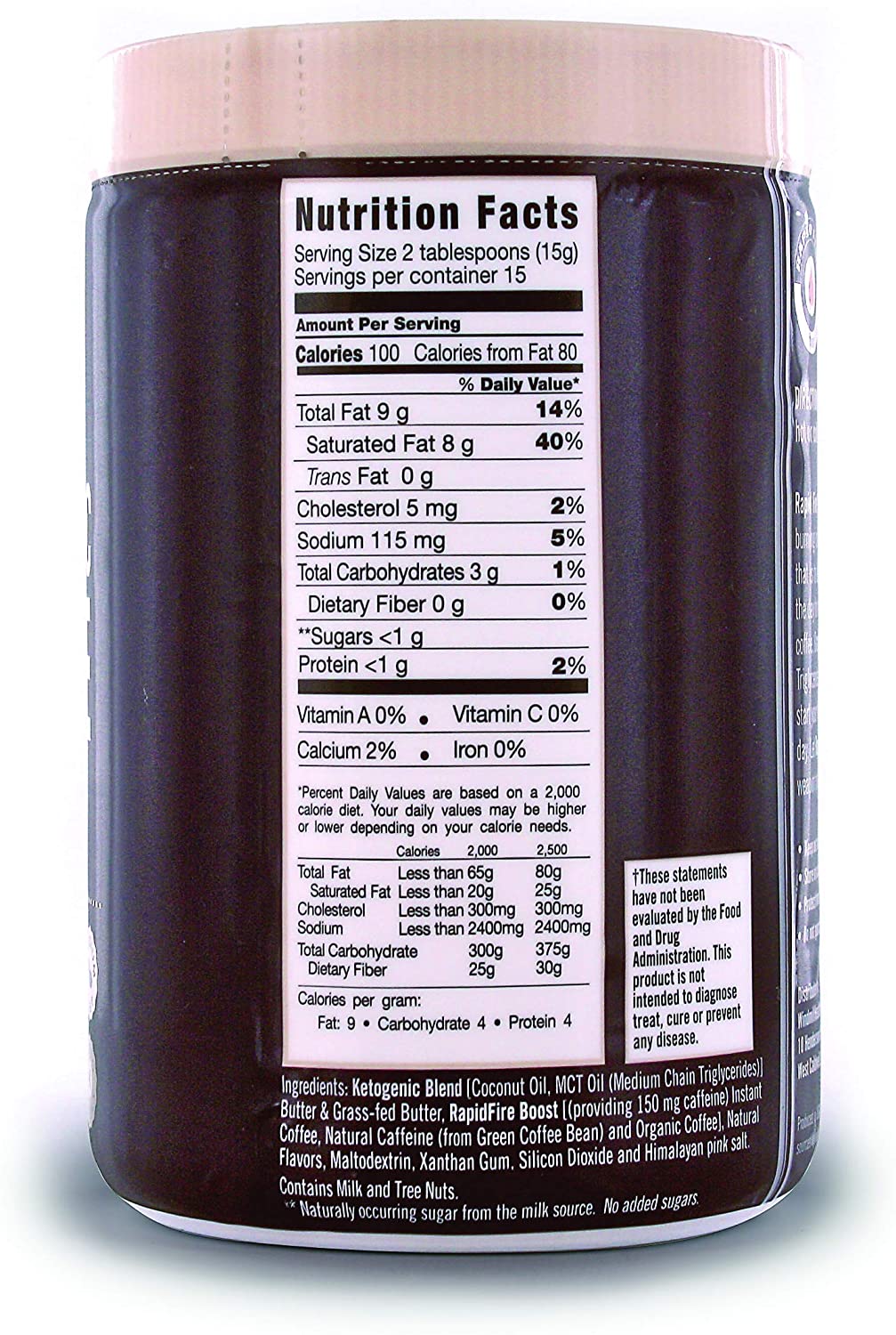Rapid fire Ketogenic Fair Trade Instant Keto Coffee Mix. Supports Energy. Metabolism. and Weight Loss. Grass Fed Butter. MCTs & Himalayan Salt. 15 servings. Hazelnut Flavor. 7.93 Ounce