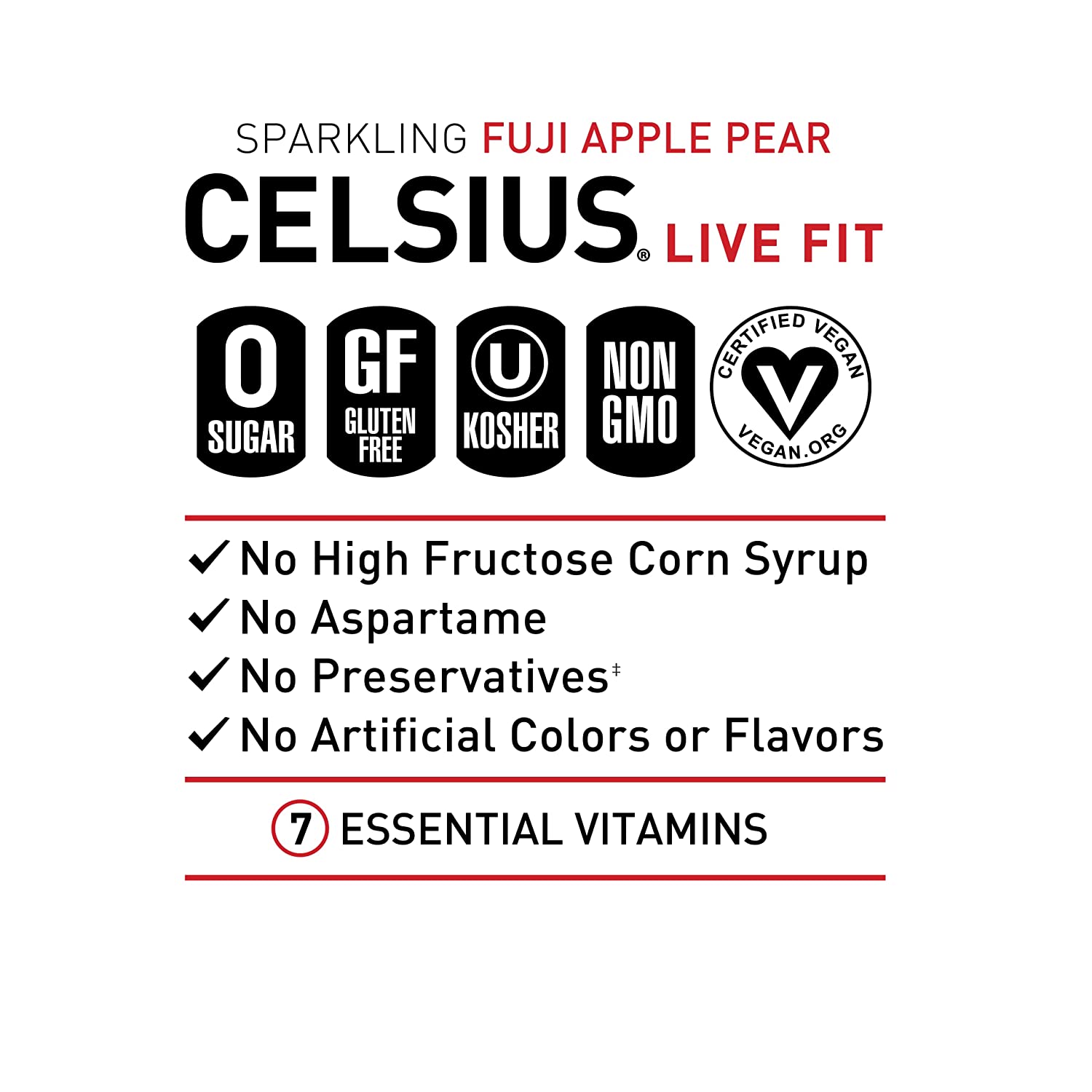 CELSIUS Essential Energy Drink 12 Fl Oz. Sparkling Fuji Apple Pear (Pack of 12)