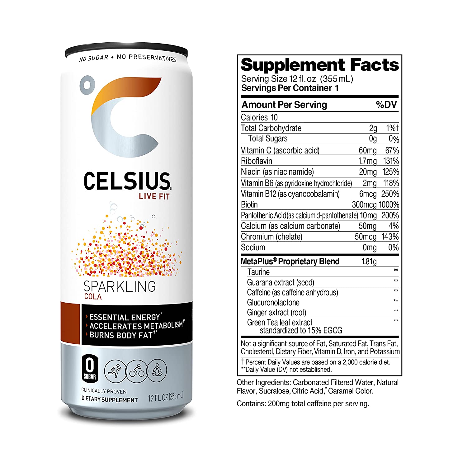 CELSIUS Essential Energy Drink 12 Fl Oz. Sparkling Cola (Pack of 12)