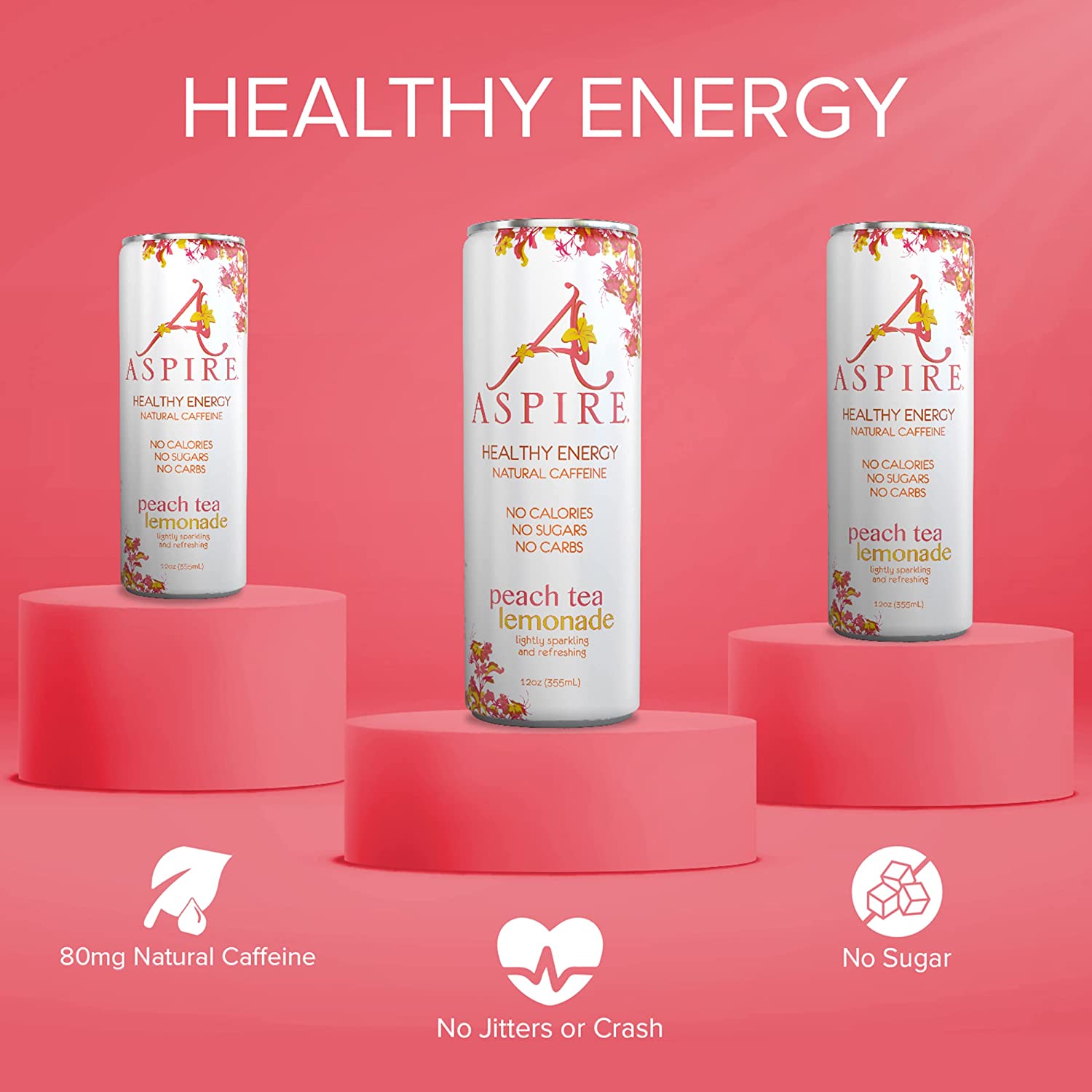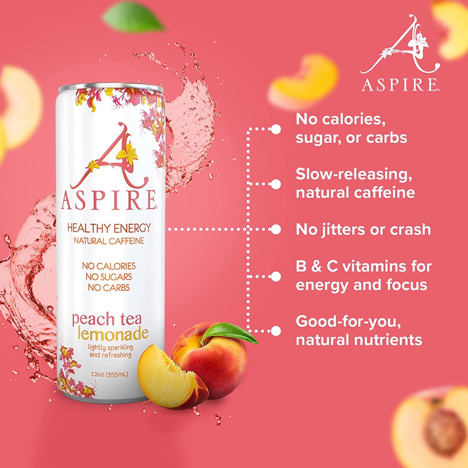 Aspire Healthy Energy Drink. Peach Tea Lemonade (Pack of 12) 12 oz Cans. Natural Caffeine and Zero Sugar. Coffee Substitute. Vitamins B & C. Keto. Vegan. and Kosher Friendly