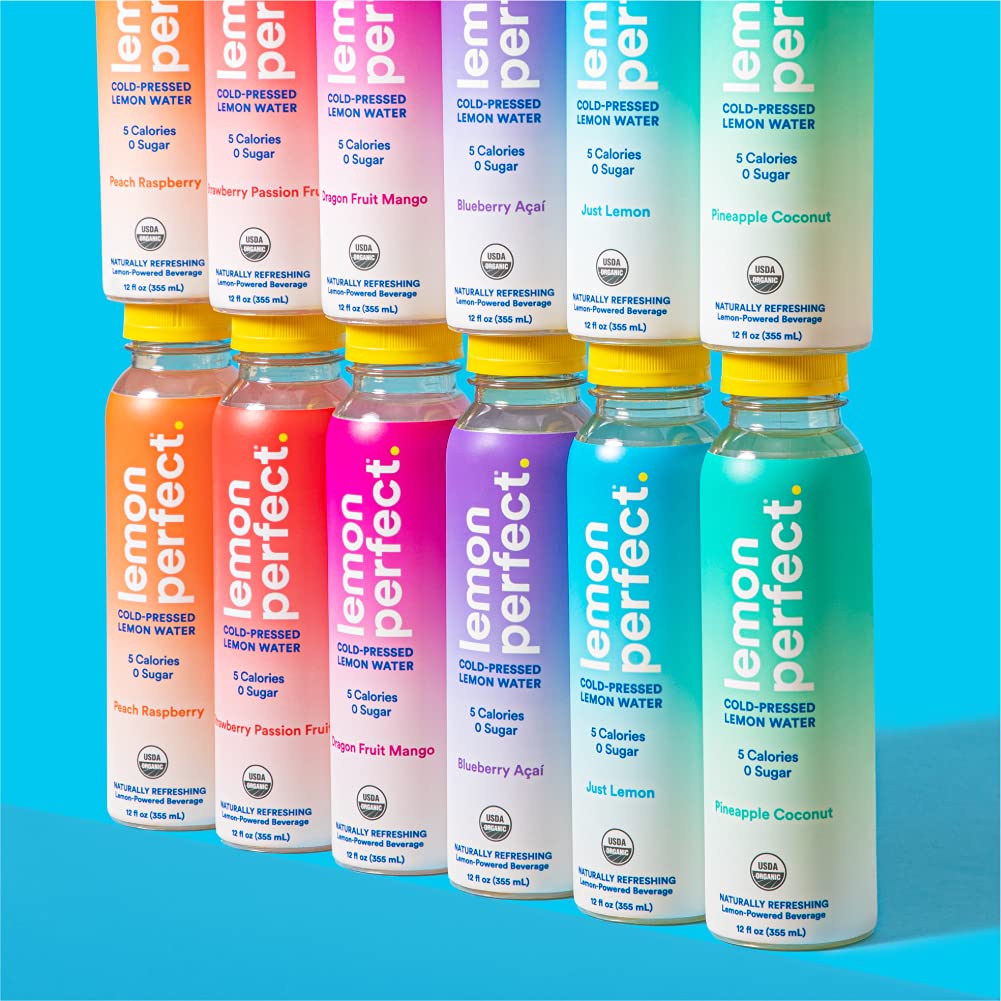 Lemon Perfect - Organic Cold-Pressed Lemon Water - Squeezed from Real Fruit. Flavored Water. Sugar-Free. Keto Certified. No Artificial Ingredients - 6-Flavor Variety Pack (12-pack)