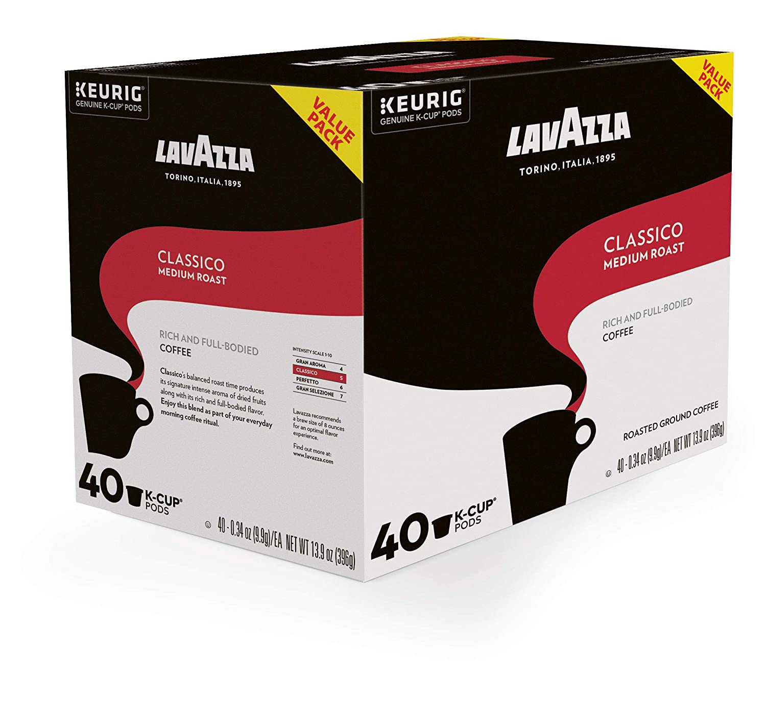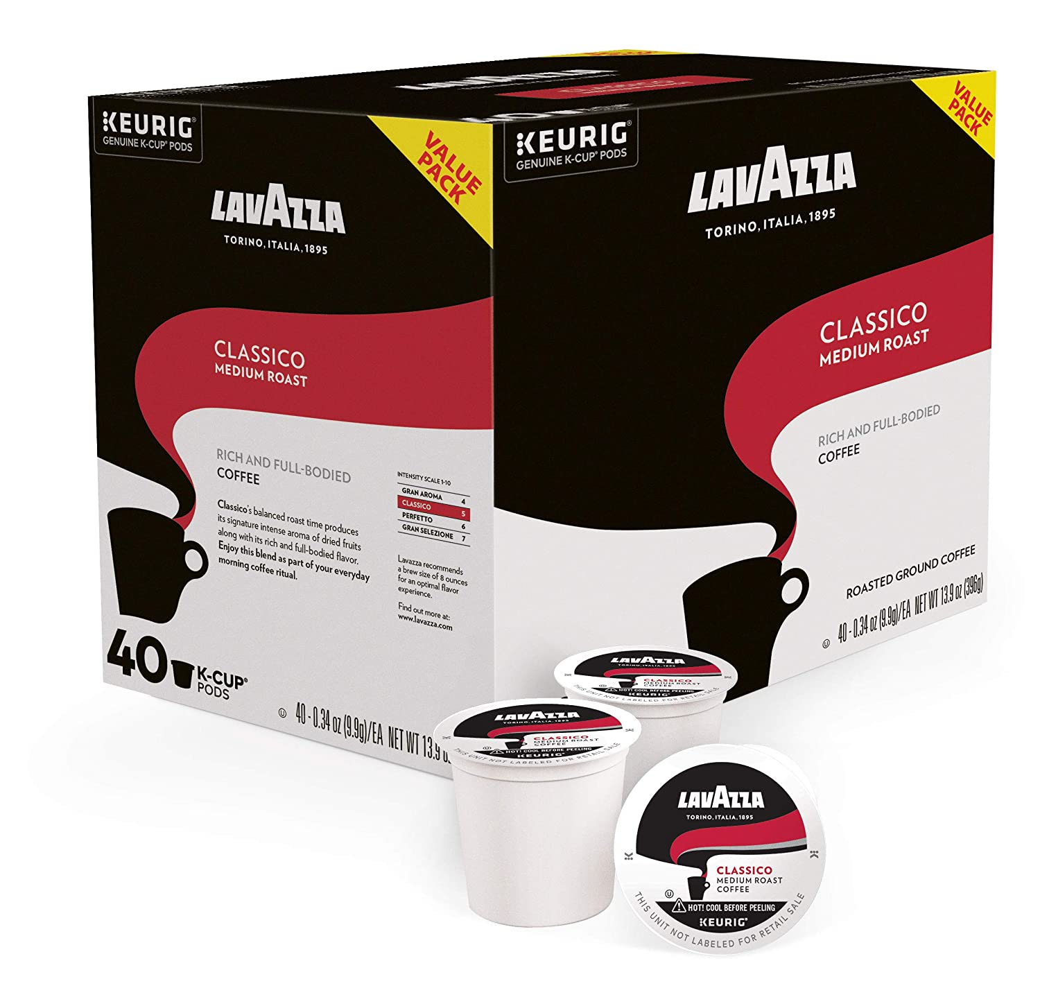Lavazza SingleServe Coffee KCups for Keurig Brewer. Classico. 40 Count