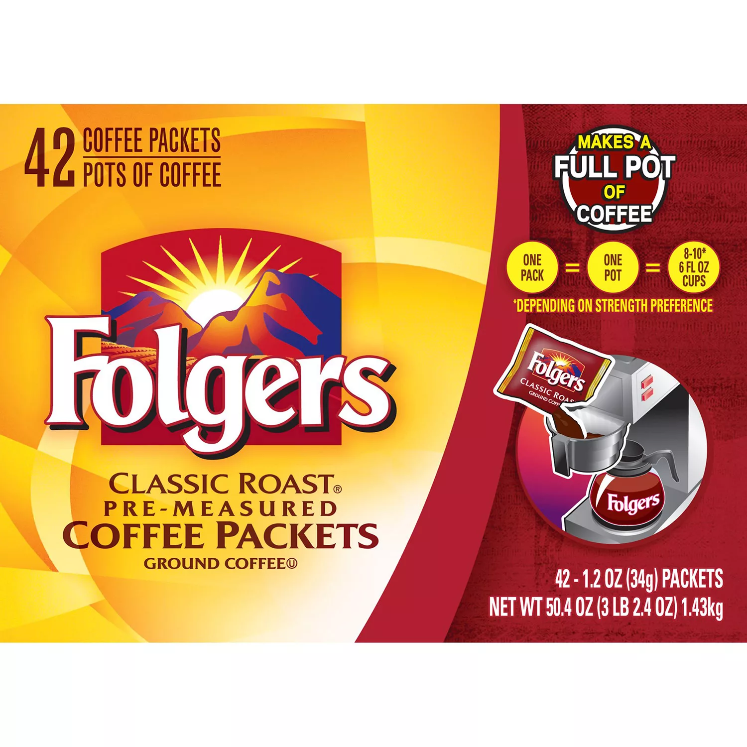 Folgers Classic Roast Ground Coffee Packets (1.2 oz.. 42 ct.)