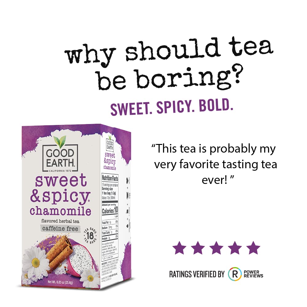 Good Earth Sweet & Spicy. Caffeine Free Chamomile Herbal Tea. 18 Bags 6 Pack