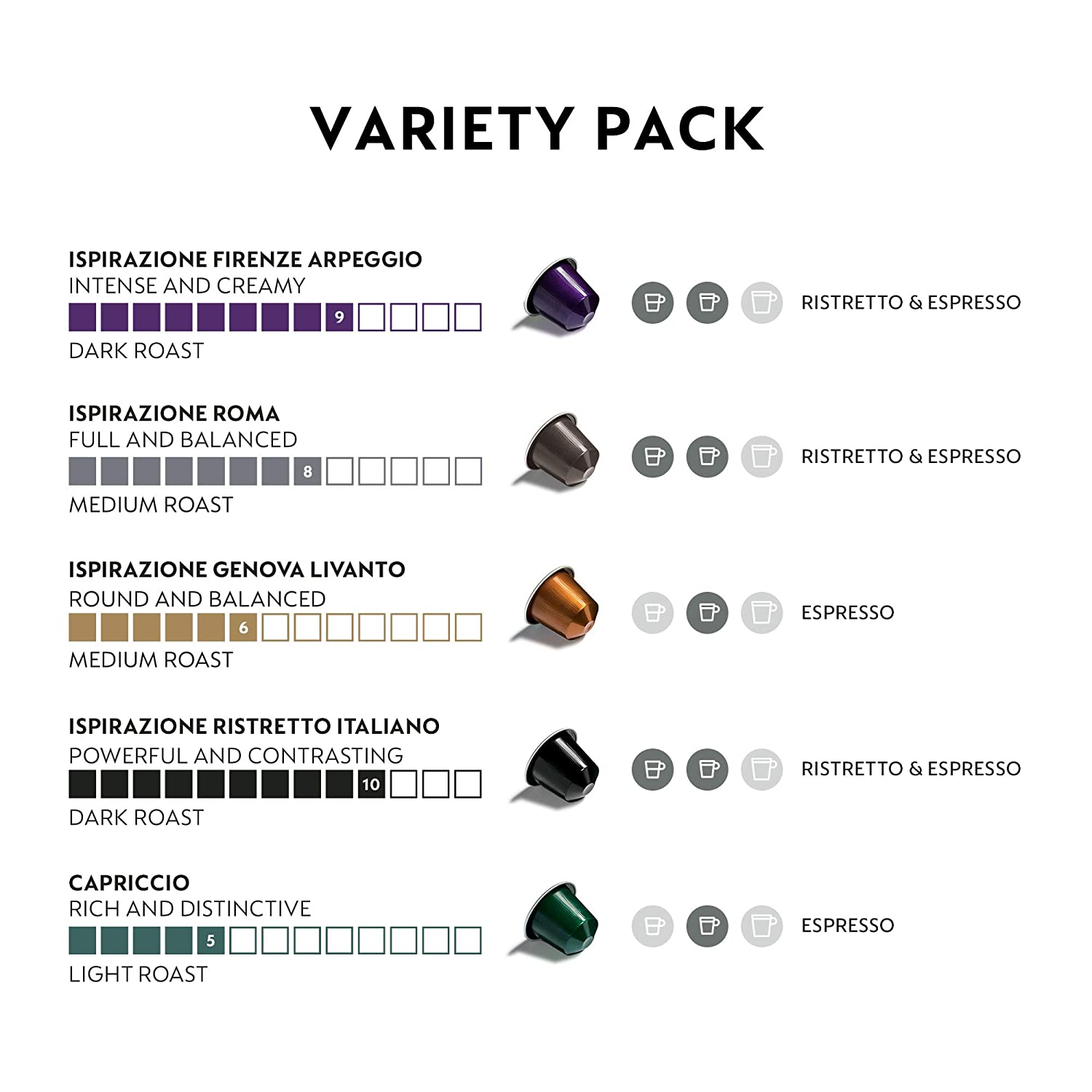 Nespresso Capsules OriginalLine.Ispirazione Best Seller Variety Pack. 50 Count. Brews 1.35oz