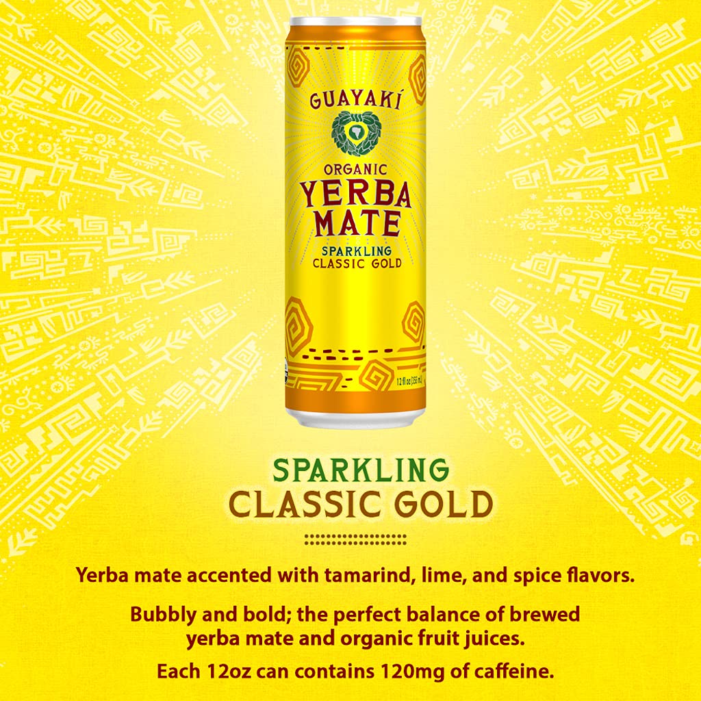 Guayaki Yerba Mate. Organic Sparkling Clean Energy Drink. Classic Gold. 12 Ounce Cans
