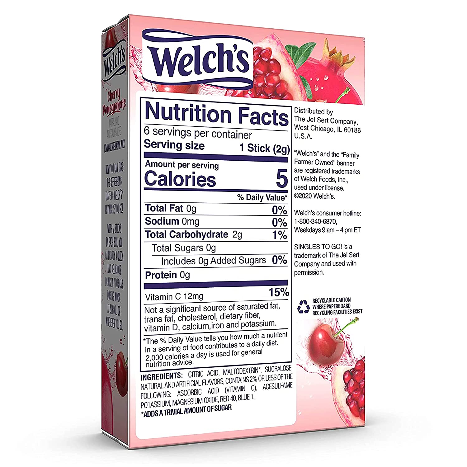 Welch-s Singles To Go Water Drink Mix - Powder Sticks. Cherry Promegranate. 0.46 Ounce (Pack of 12)