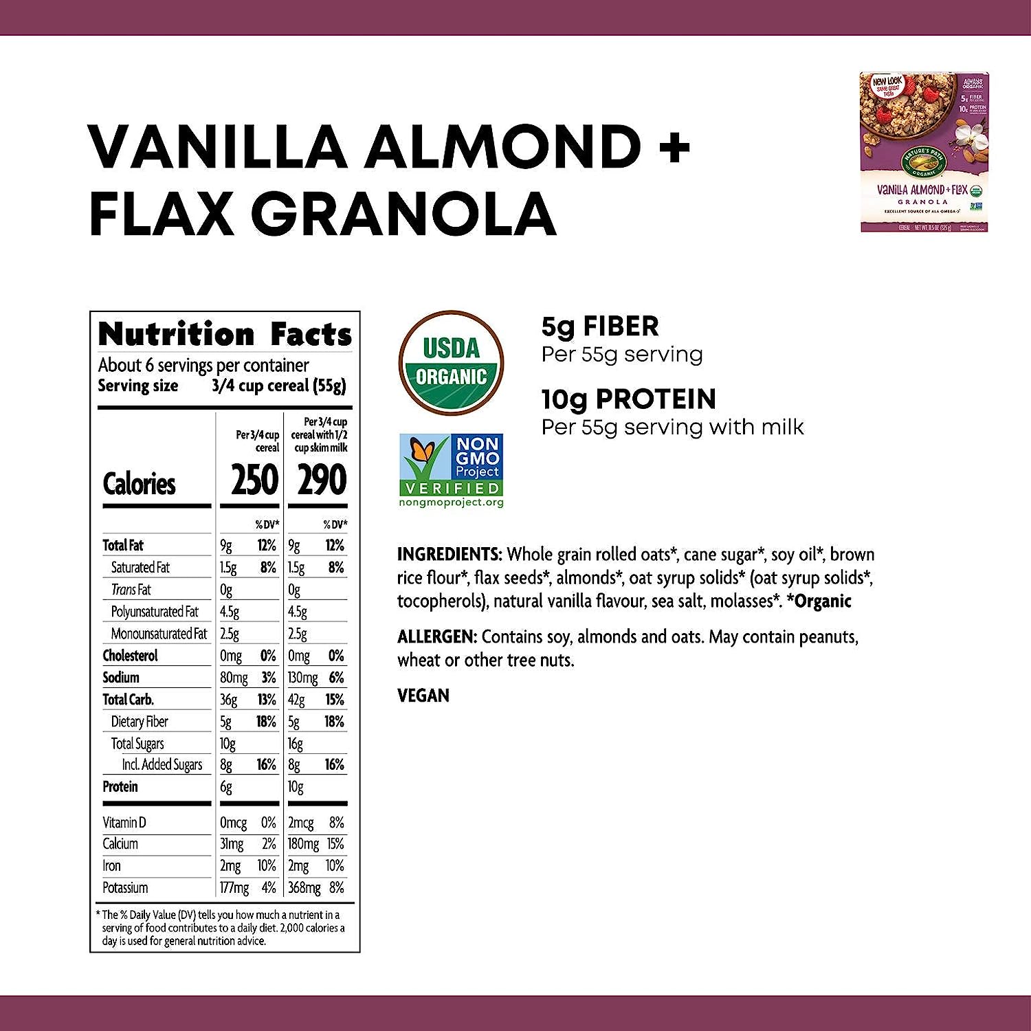 Nature's Path Vanilla Almond and Flax Granola. Healthy. Organic. 11.5 Ounce (Pack of 12)