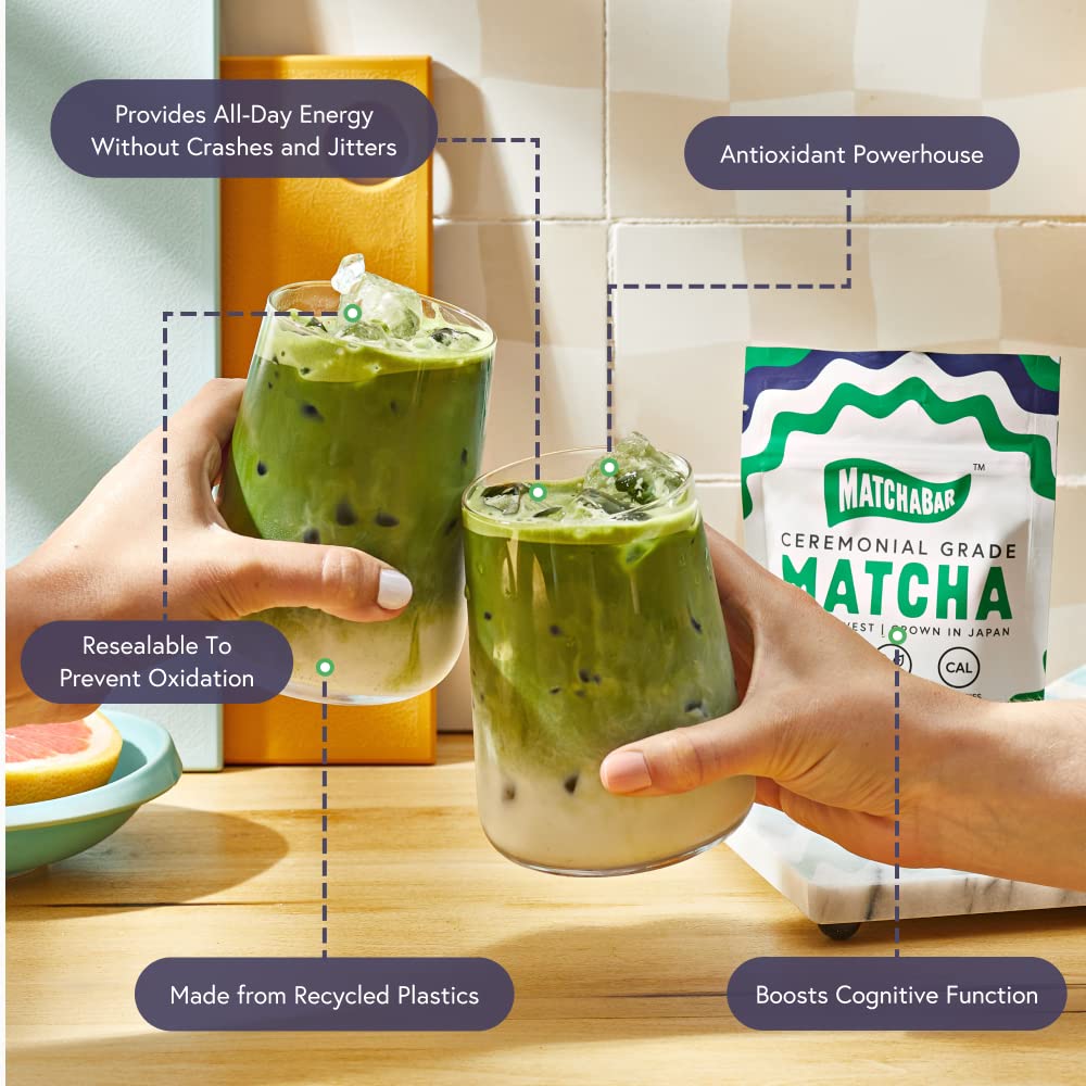 MATCHABAR Ceremonial Grade Matcha Green Tea Powder | Harvested in Japan | Premium Japanese Matcha Latte Powder | Green Tea Matcha Powder & Authentic Matcha Tea Powder. Matcha Powder Latte (80g Pouch)