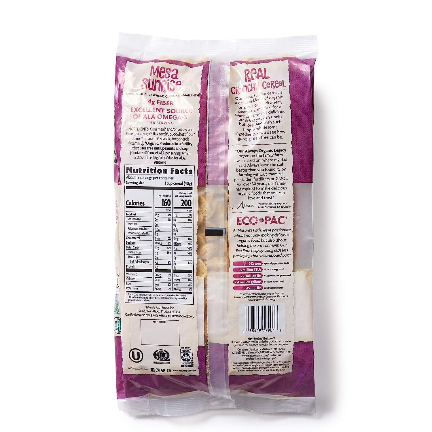 Nature-s Path Organic Gluten Free Mesa Sunrise Cereal. 1 Lb 10.4 Oz Earth Friendly Package (Pack of 6). Non-GMO. Low Fat