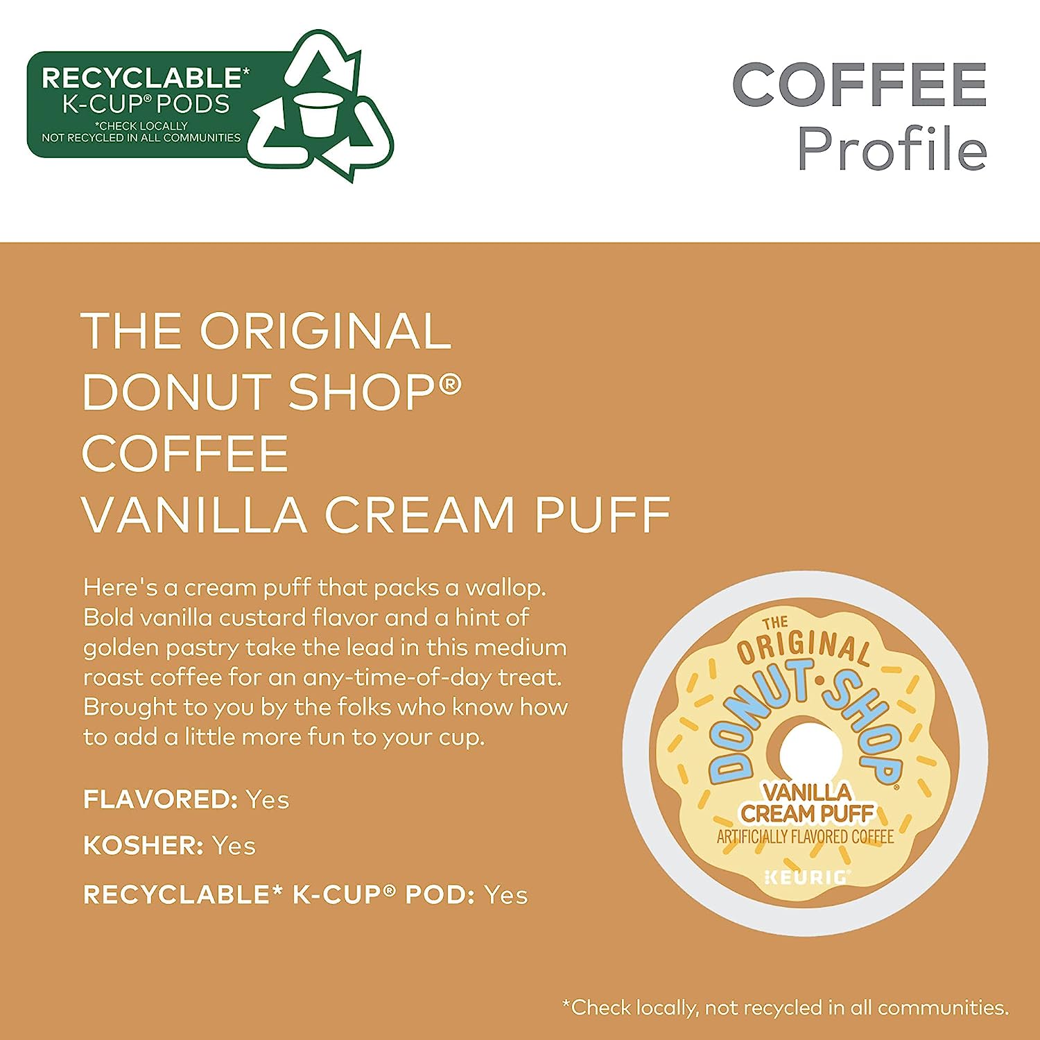 The Original Donut Shop Vanilla Cream Puff Keurig Single-Serve K-Cup Pods. Medium Roast Coffee. 12 Count (Pack of 6)