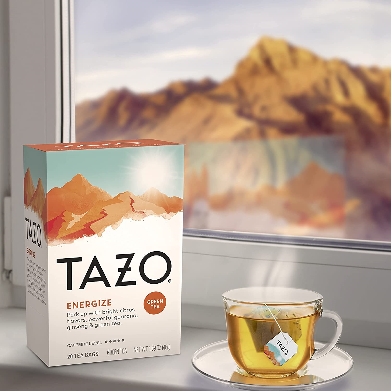 Tazo Energize. Green Tea Bags. Hot Tea. High Caffeine 1.41 oz. 20 Tea Bags