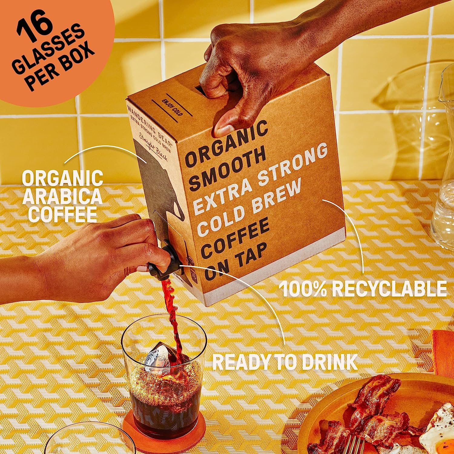 Wandering Bear Organic Caramel Cold Brew Coffee. 32 fl oz. 6 pack - Extra Strong. Smooth. Organic. Unsweetened. Shelf-Stable. and Ready to Drink Iced Coffee. Cold Brewed Coffee. Cold Coffee